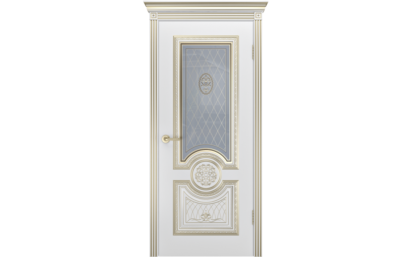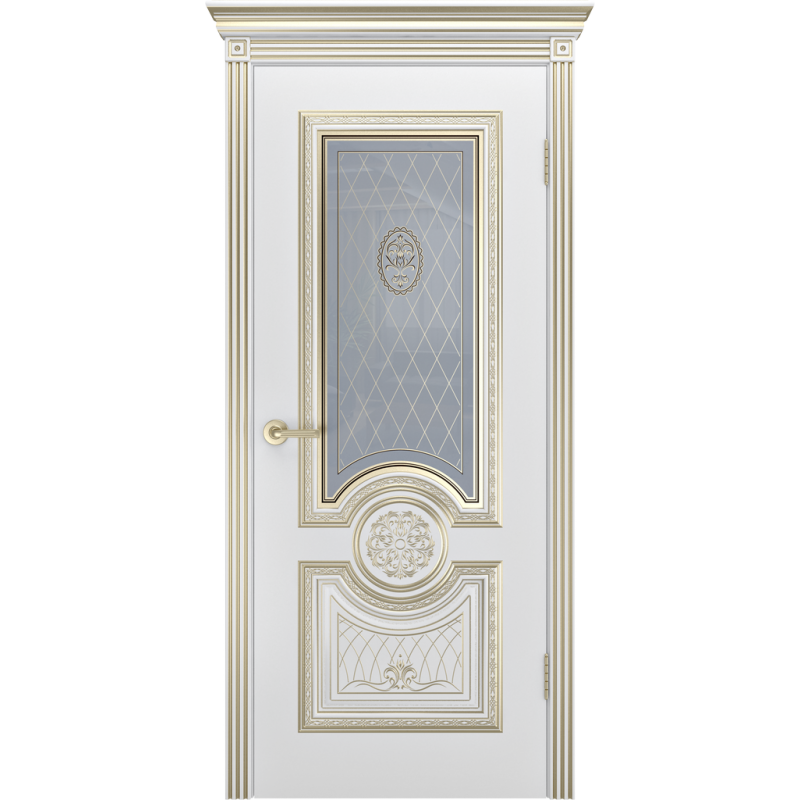 Дверь межкомнатная Шейлдорс, Гамма Корона, В-3, Белая с патиной, со стеклом