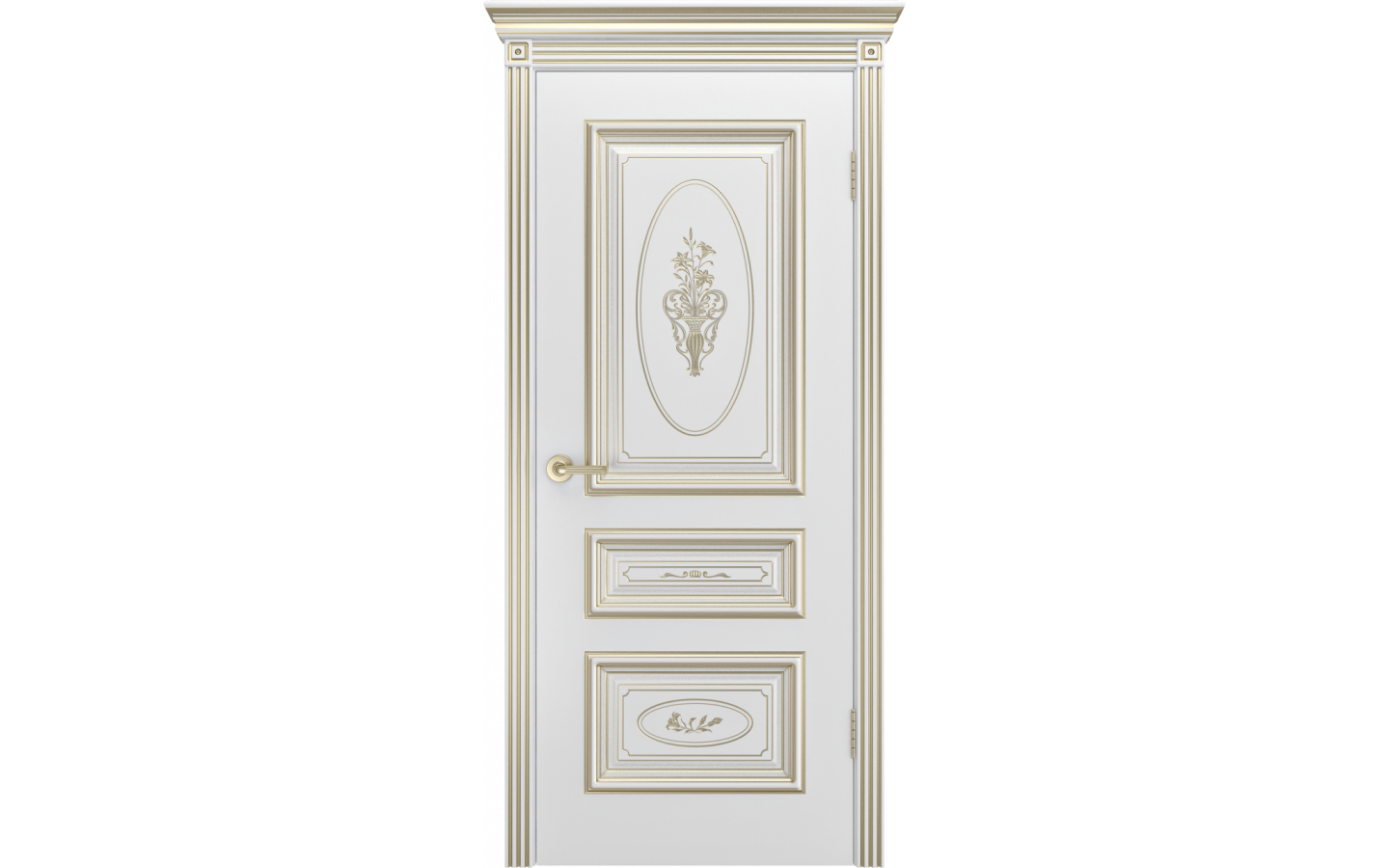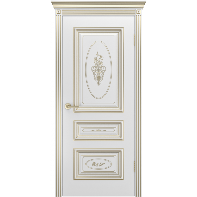 Дверь межкомнатная Шейлдорс, Трио, R-0 B3 Белая, Эмаль Патина Белое Золото, глухая