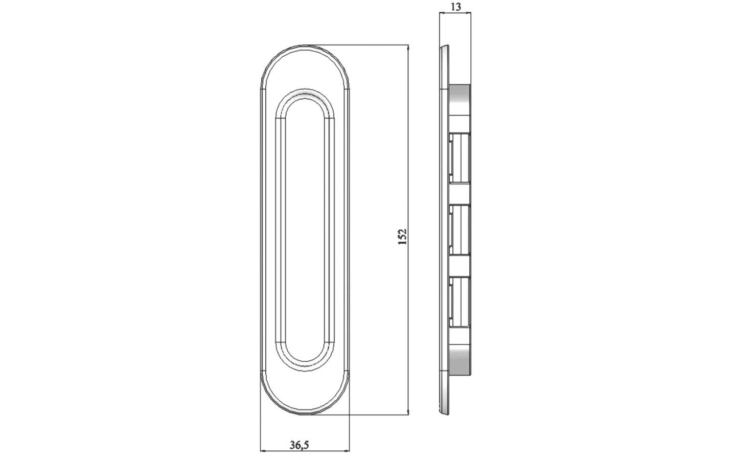 Ручка для раздвижной двери без механизма, овал, цвет золото