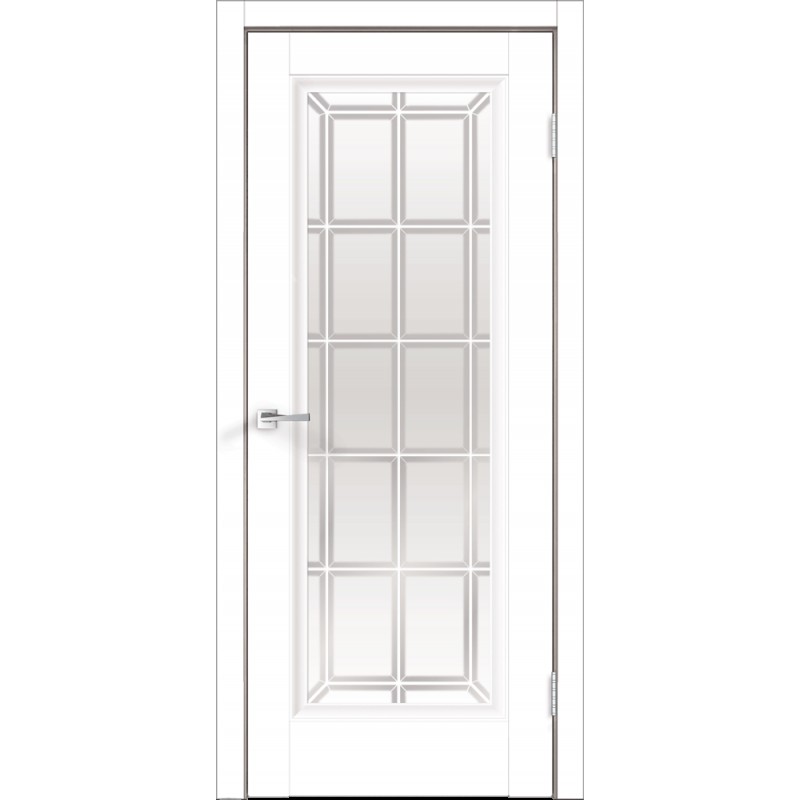 Дверное полотно Экошпон ALTO 9 со стеклом цвет Белый Эмалит стекло каленое Английская Решетка