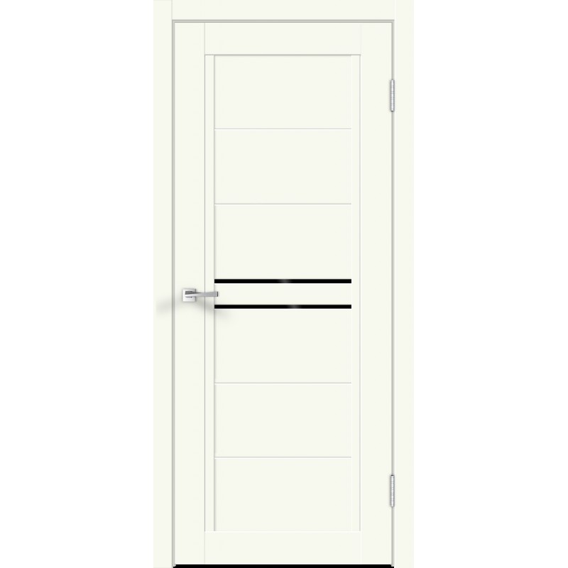 Дверное полотно Экошпон NEXT 2 цвет Молочный Эмалит стекло Лакобель черное