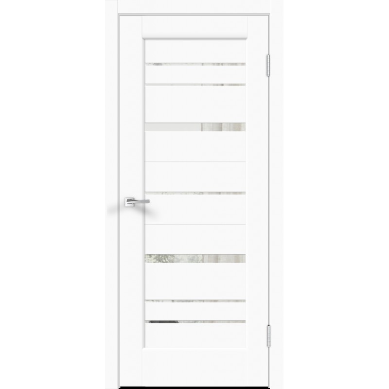 Дверное полотно Экошпон PREMIER 22 цвет Белый Эмалит стекло Зеркало с двух сторон