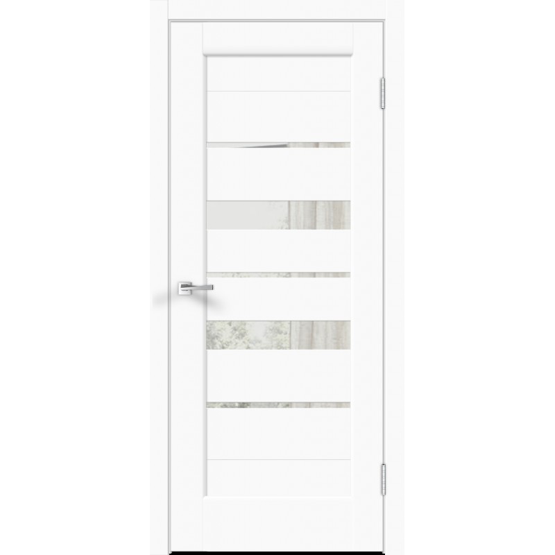 Дверное полотно Экошпон PREMIER 23 цвет Белый Эмалит стекло Зеркало с двух сторон