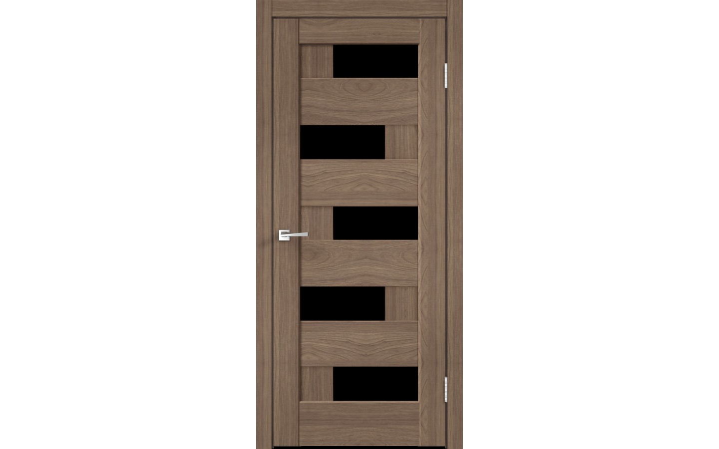 Дверное полотно Экошпон PREMIER 5 цвет Ильм Европейский стекло Лакобель черное