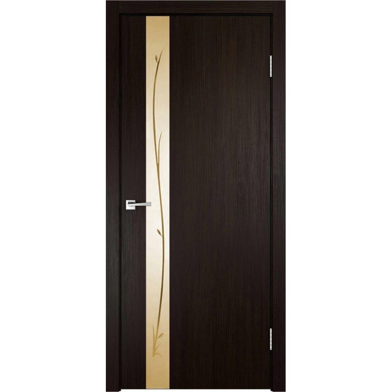 Дверное полотно Экошпон SMART Z1 цвет Венге зеркало Веточки бронза