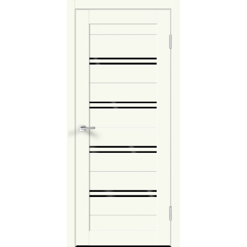 Дверь межкомнатная Экошпон XLINE 4 цвет Молочный Эмалит стекло Лакобель черное