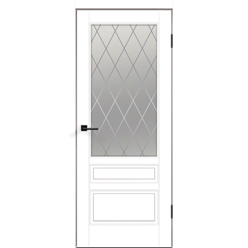 Дверное полотно Эмаль SCANDI 3V цвет Белый стекло РОМБ Мателюкс