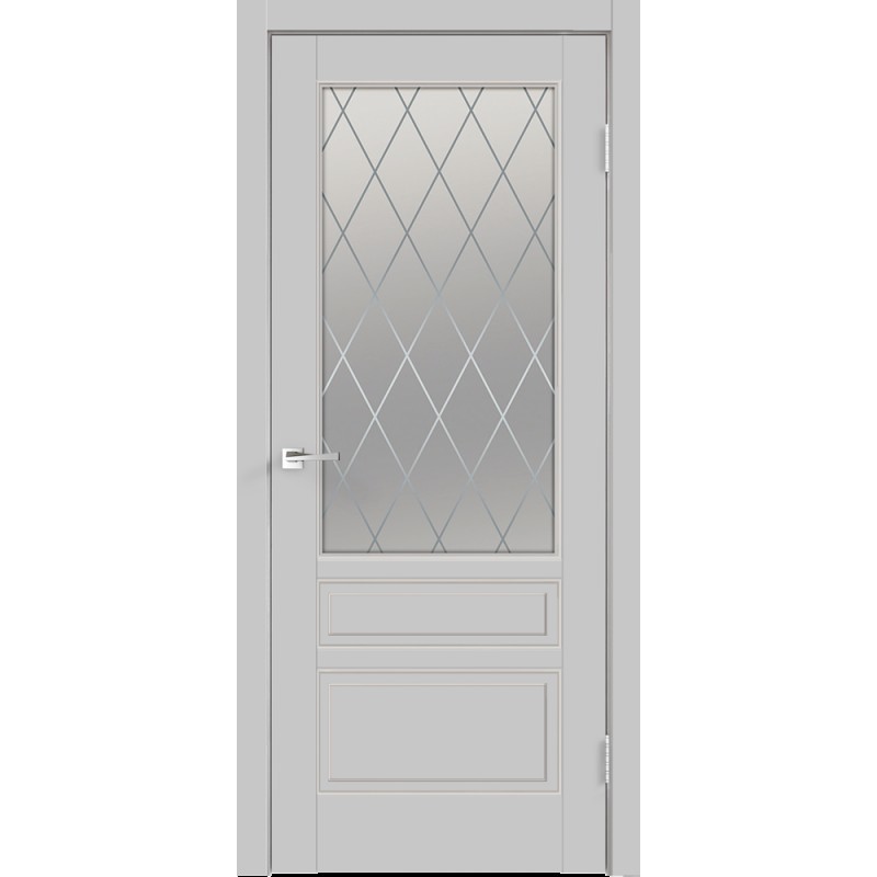 Дверное полотно Эмаль SCANDI 3V цвет Светло-серый стекло РОМБ Мателюкс