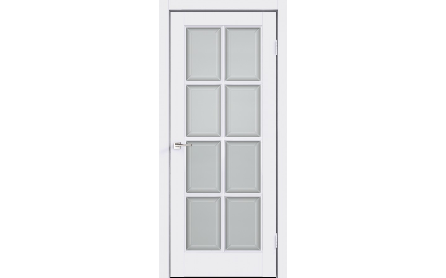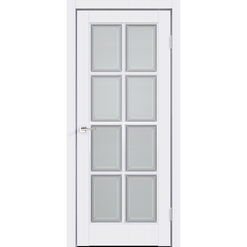Дверное полотно Эмаль SCANDI 4V цвет Белый стекло Мателюкс, Английская решетка
