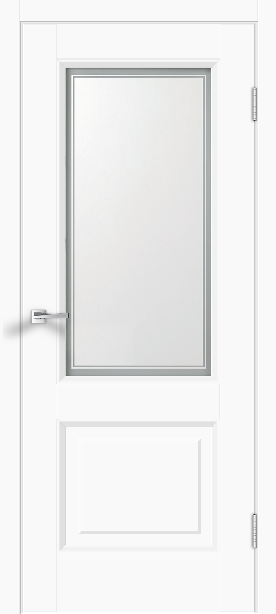 Дверное полотно Экошпон ALTO 6 цвет Белый Эмалит стекло Мателюкс, контур №1 Изящная классика в уд...