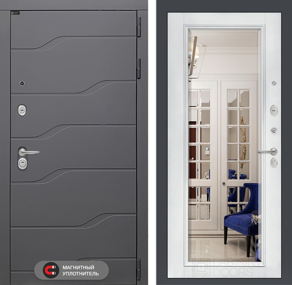 Входная дверь RIVER с зеркалом Панорама - Белый софт