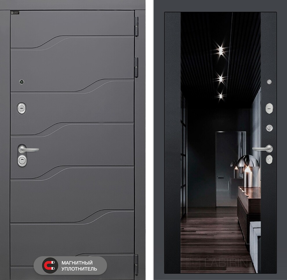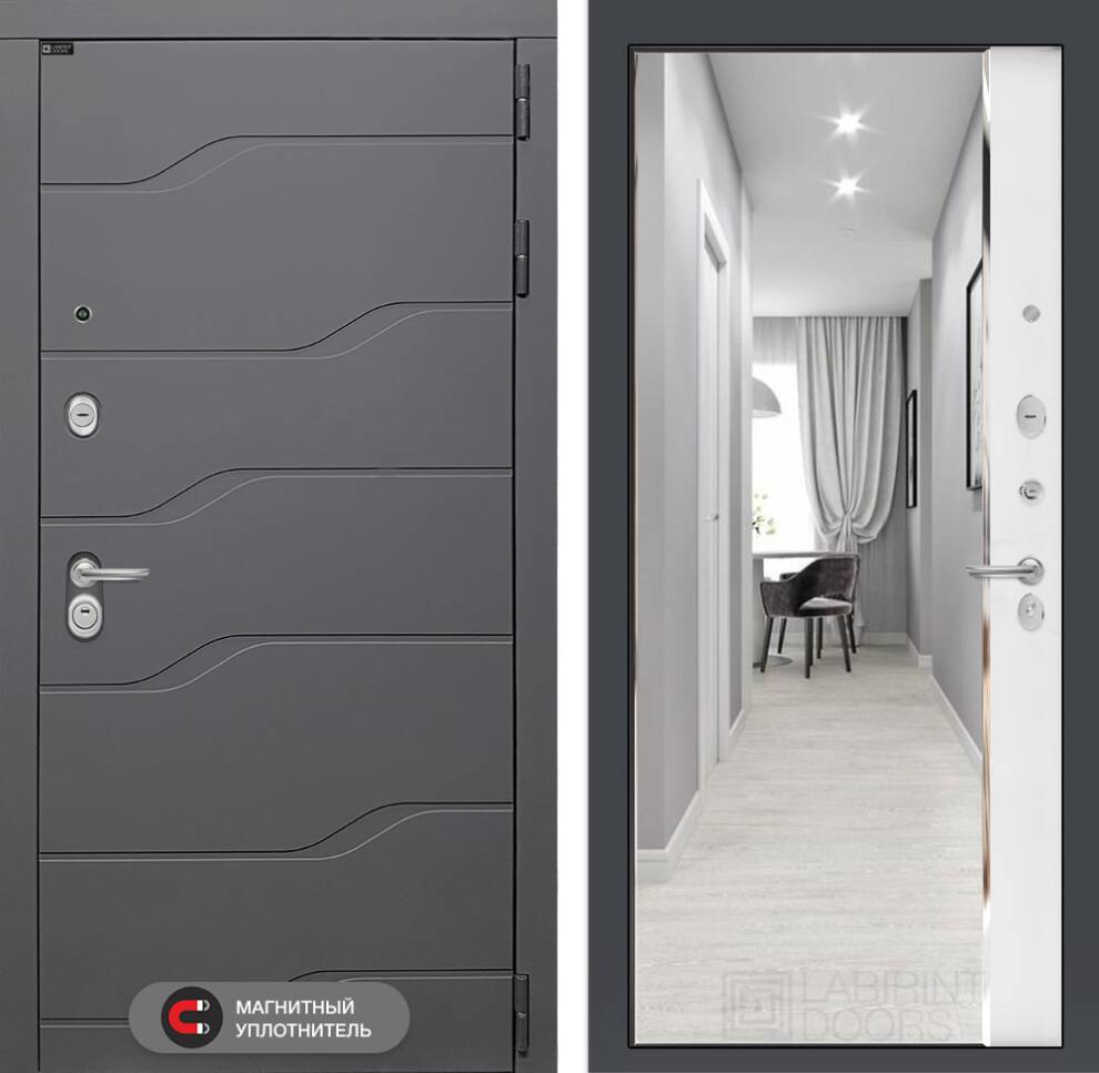 Входная дверь RIVER с Зеркалом Максимум - Грей софт