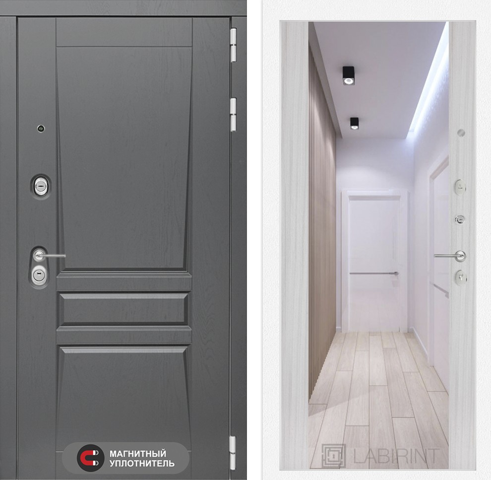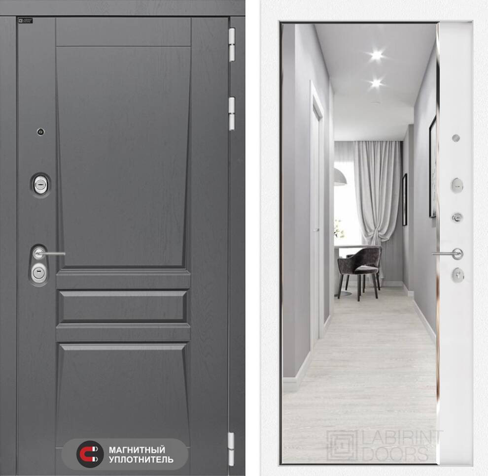 Входная дверь Платинум с Зеркалом Максимум - Грей софт