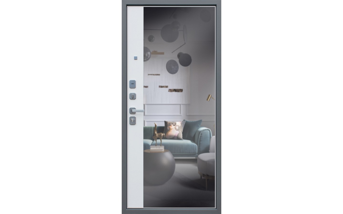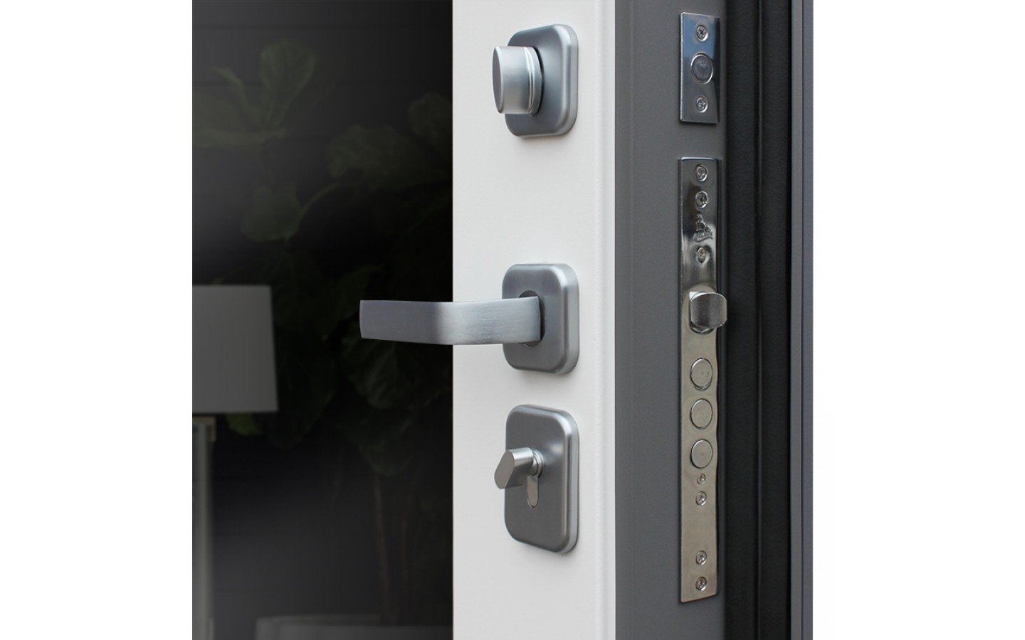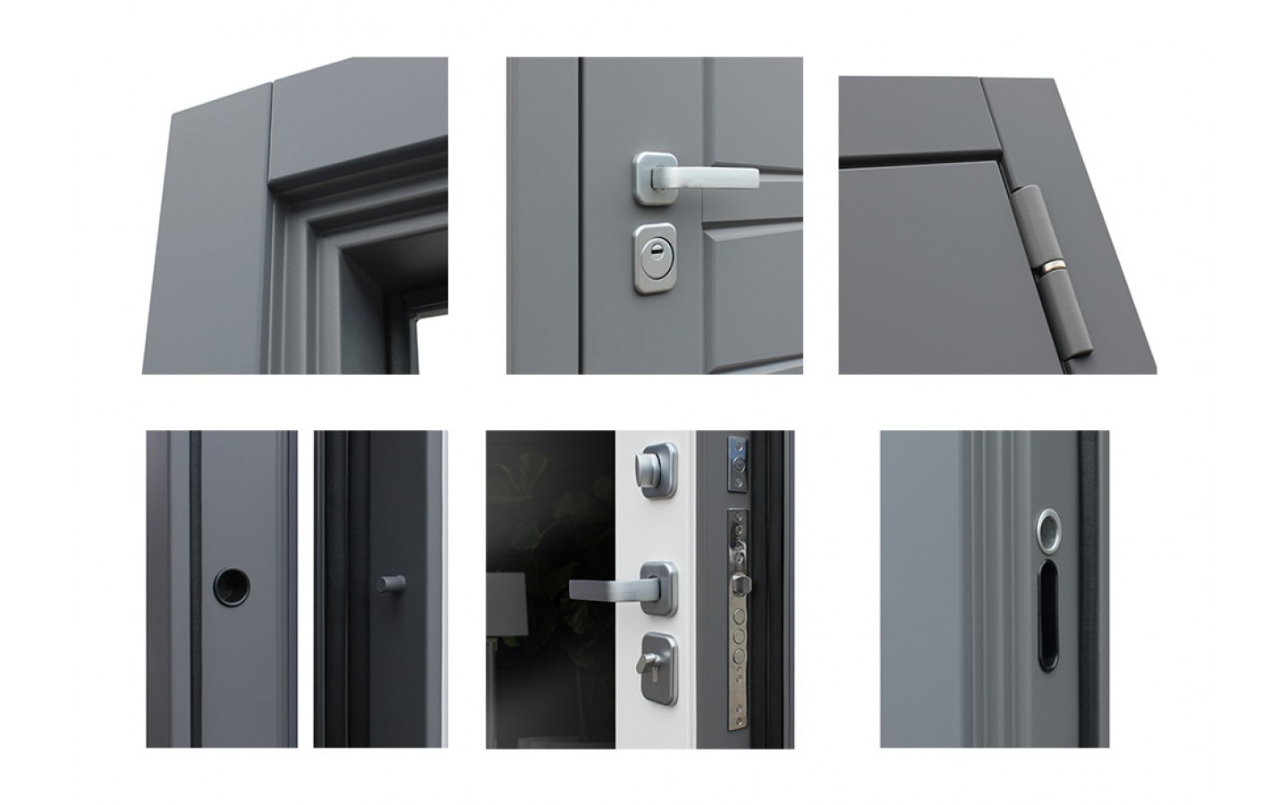| Внешняя отделка | Лист металла 1, 5 мм. Экошпонированная панель МДФ 10 мм. Объемная фрезеровка. Цвет силк титан. Наличник МДФ 80 мм. |
