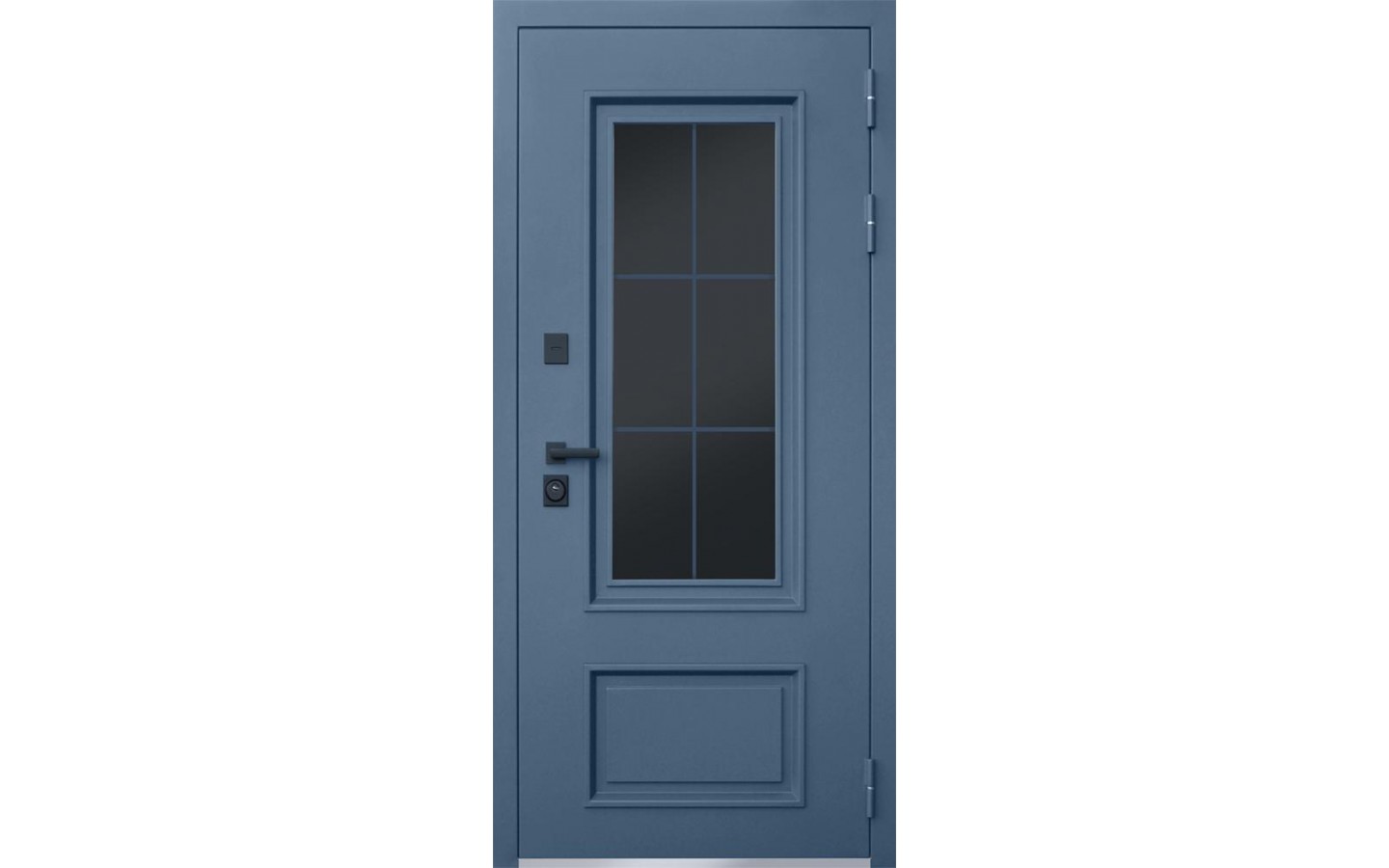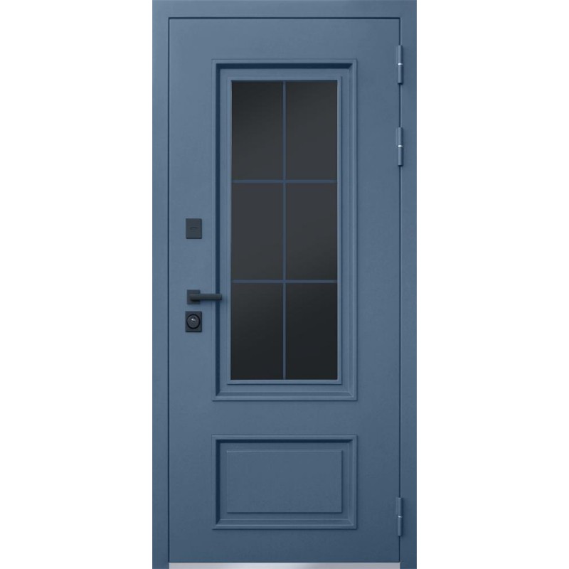 | Внешняя отделка | Лист металла 1, 8 мм. Два слоя покрытия. Металлофиленки 2 шт. Двухкамерный тонированный стеклопакет. Английская решетка внутри стеклопакета. Наличники гладкие. |