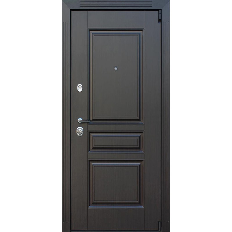 | Внешняя отделка | Лист металла 2 мм. Панель МДФ 16 мм. Объемная фрезеровка. Цвет венге. Наличник МДФ: толщина 16 мм, ширина 85 мм. |