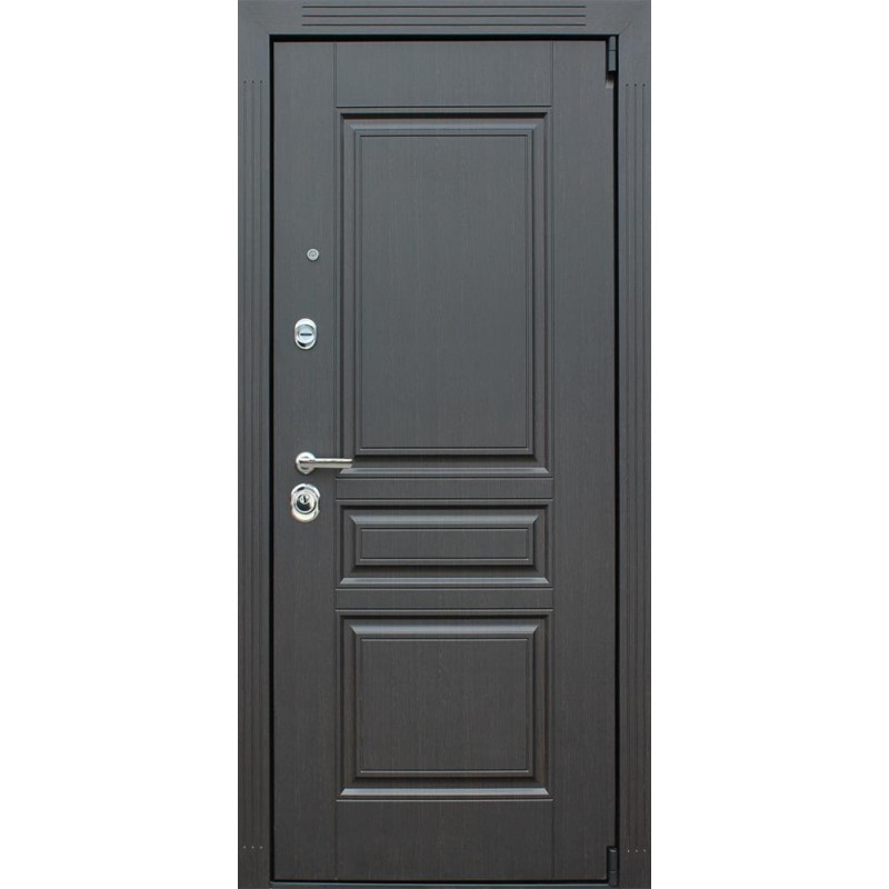 | Внешняя отделка | Лист металла 2 мм. Панель МДФ 16 мм. Объемная фрезеровка. Цвет венге. Наличник МДФ: толщина 16 мм, ширина 85 мм. |
