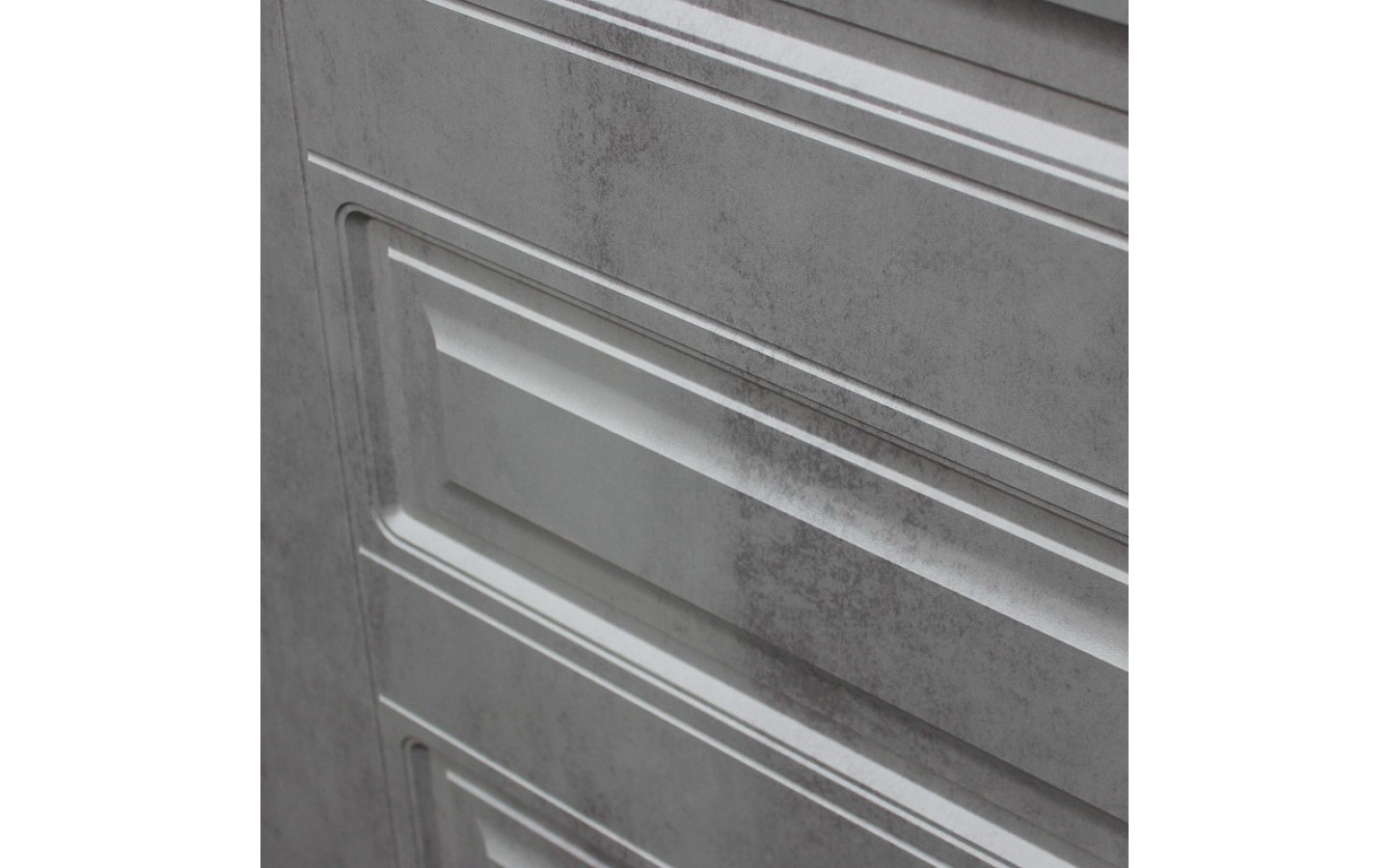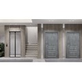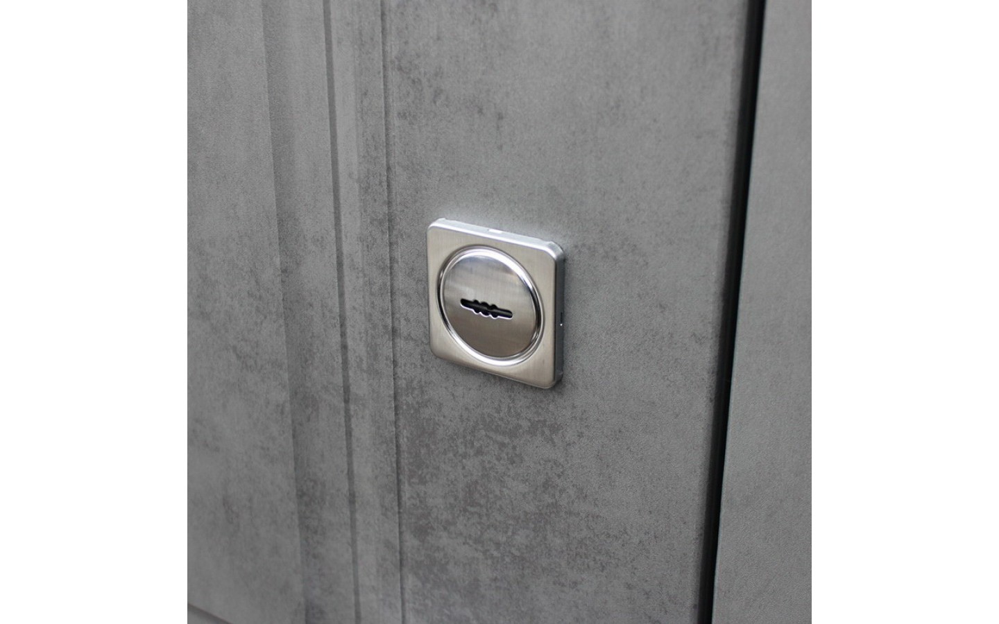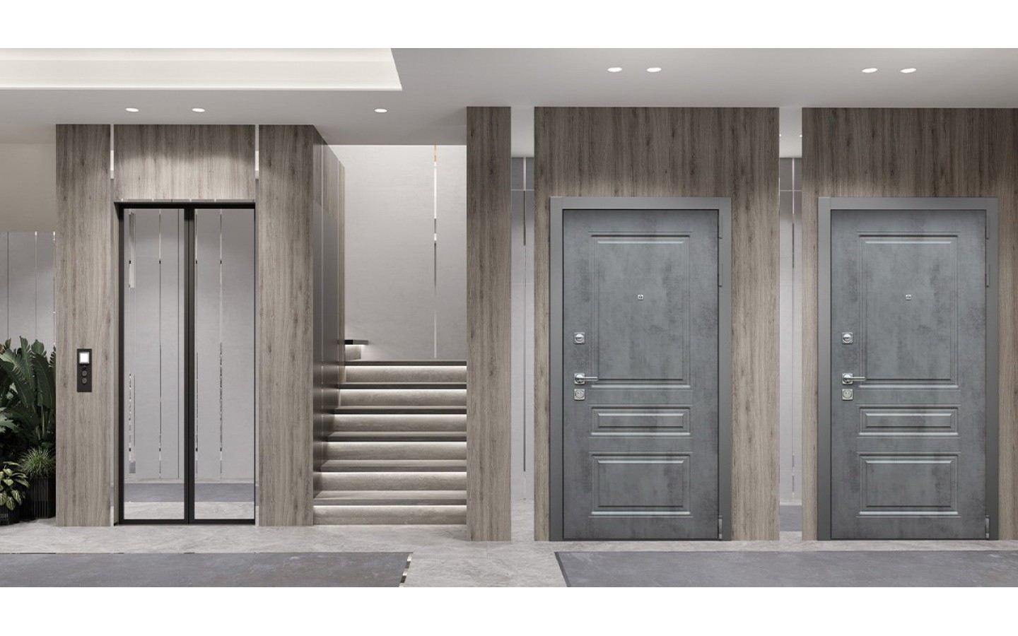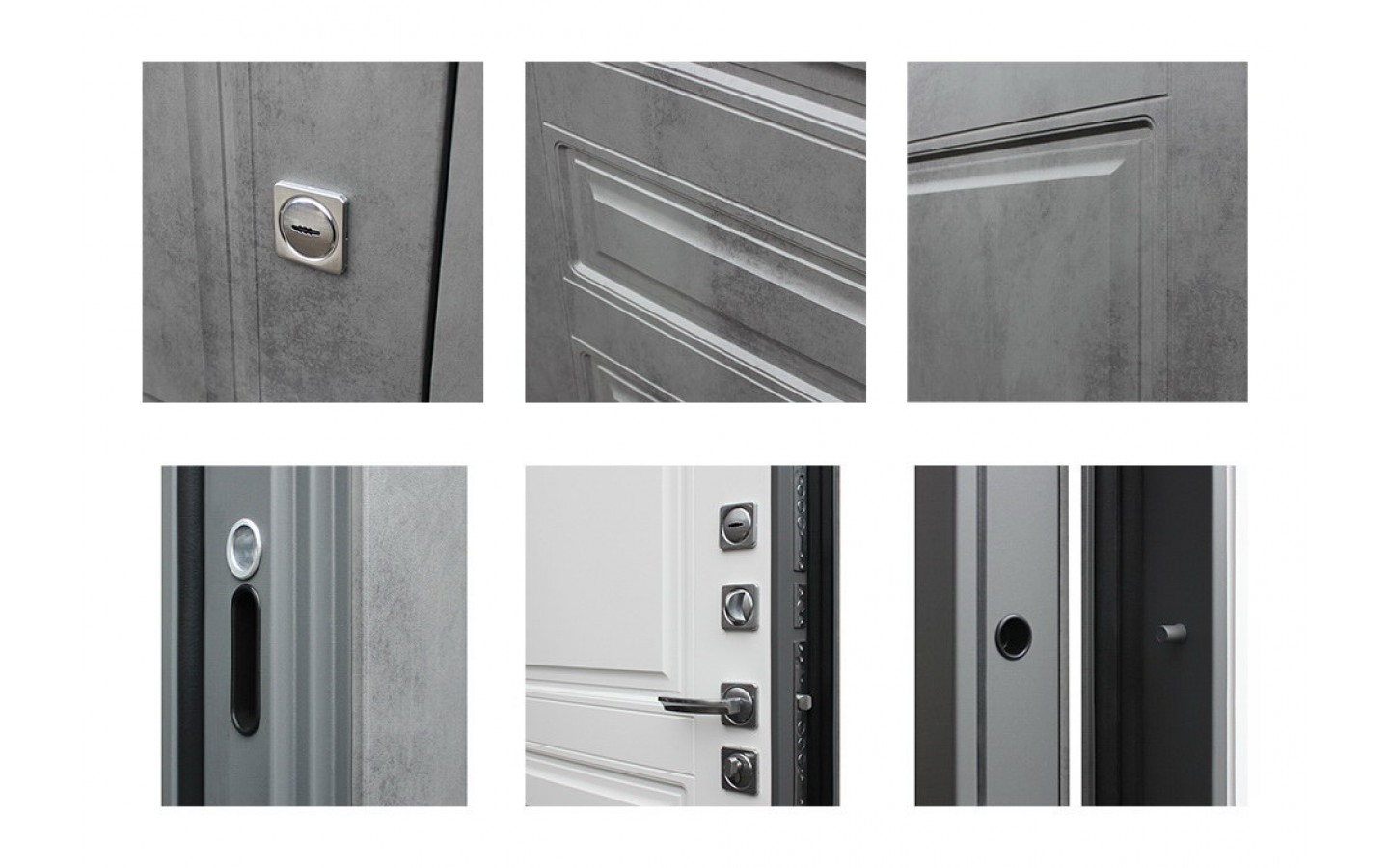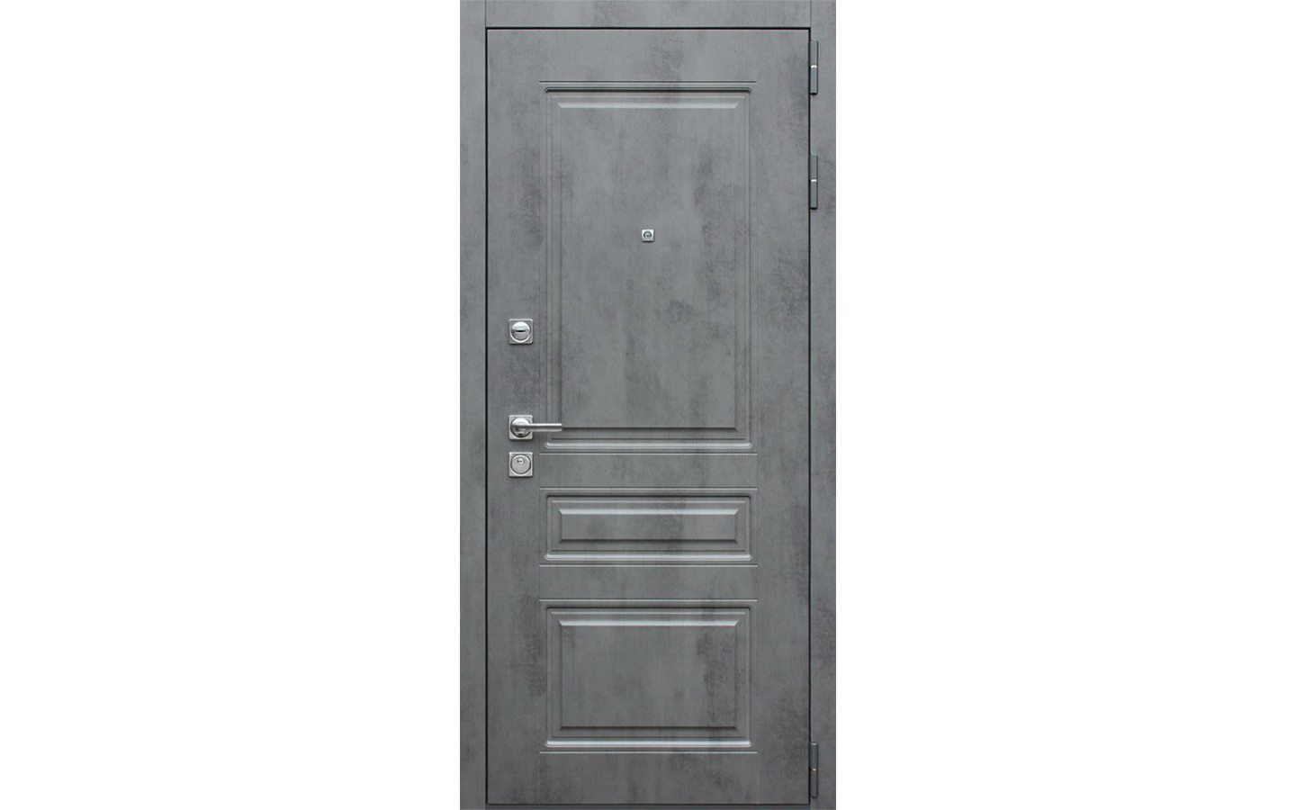 | Внешняя отделка | Лист металла 1, 5 мм. Экошпонированная панель МДФ 10 мм. Объемная фрезеровка. Цвет бетон темный. Наличник МДФ 80 мм. |