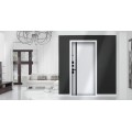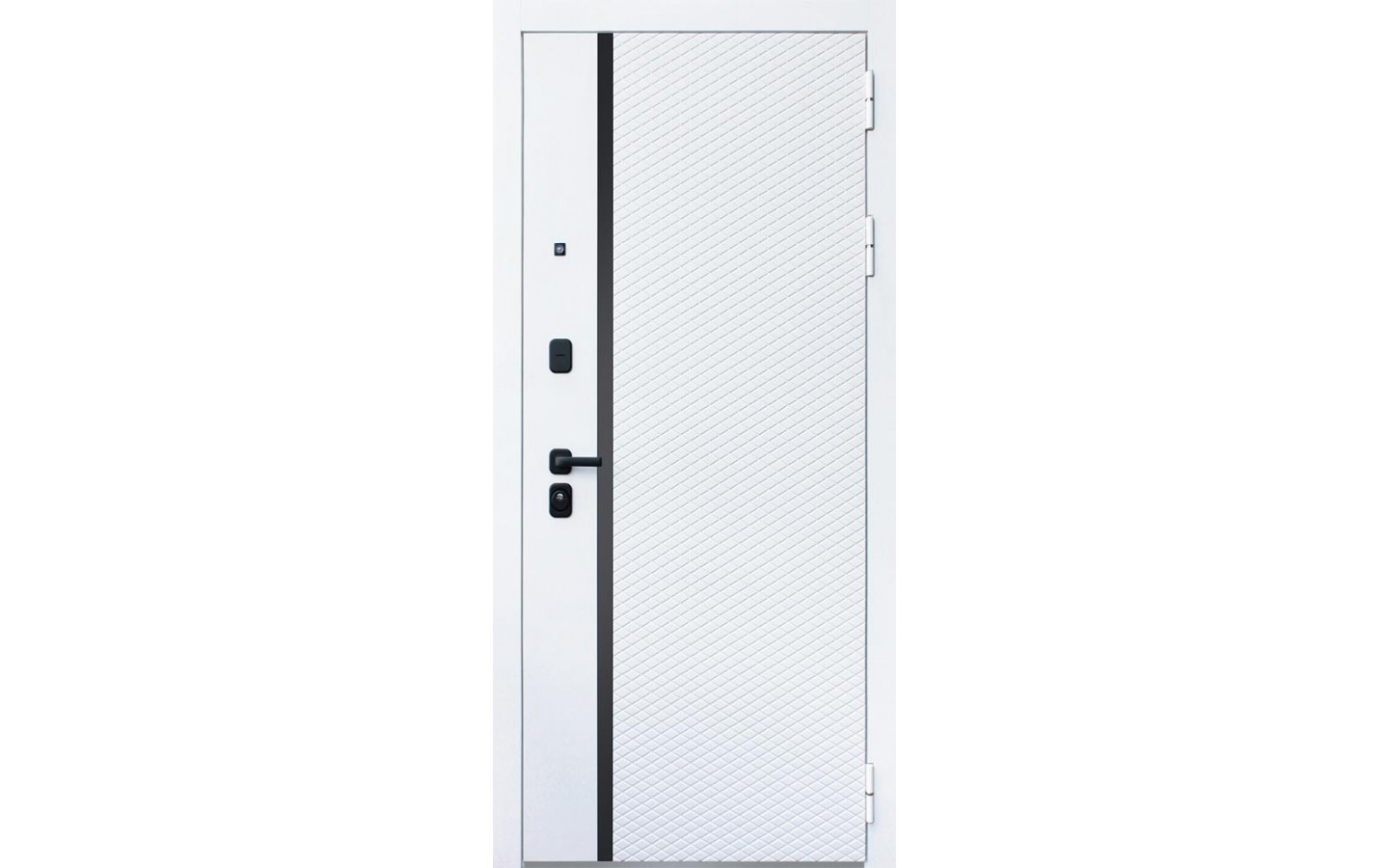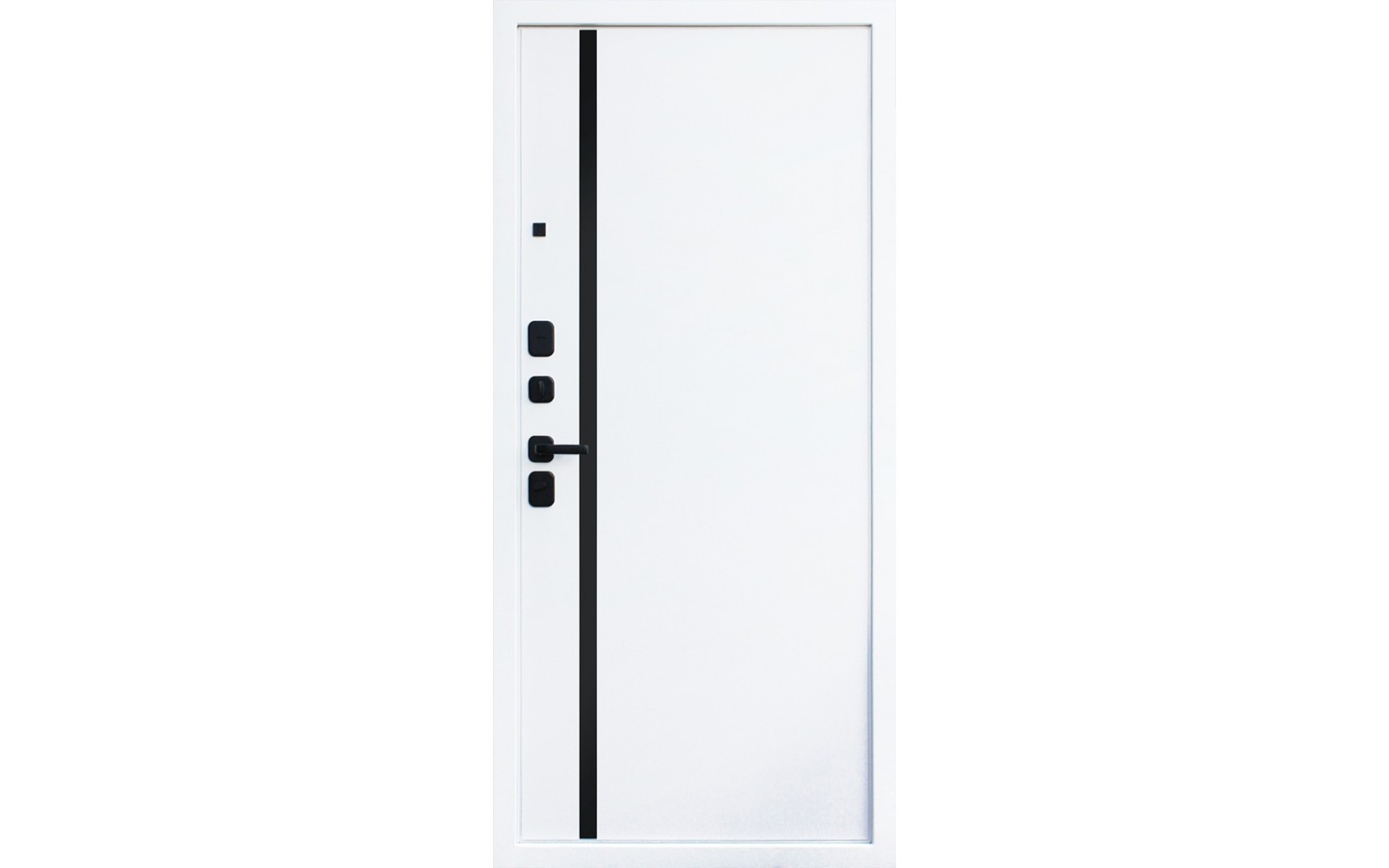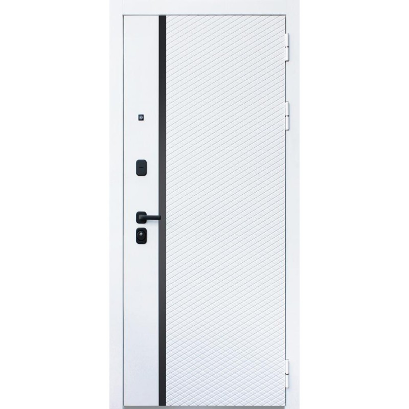 | Внешняя отделка | Лист металла 1, МДФ 80 мм., 5 мм. Экошпонированная панель МДФ 10 мм (дизайн ФЛС). Цвет белый матовый. Вертикальная вставка из черного глянцевого лакобеля. Объемная фрезеровка. Наличник гладкий |