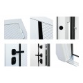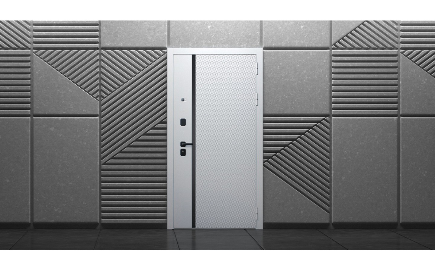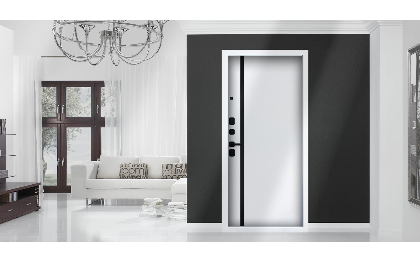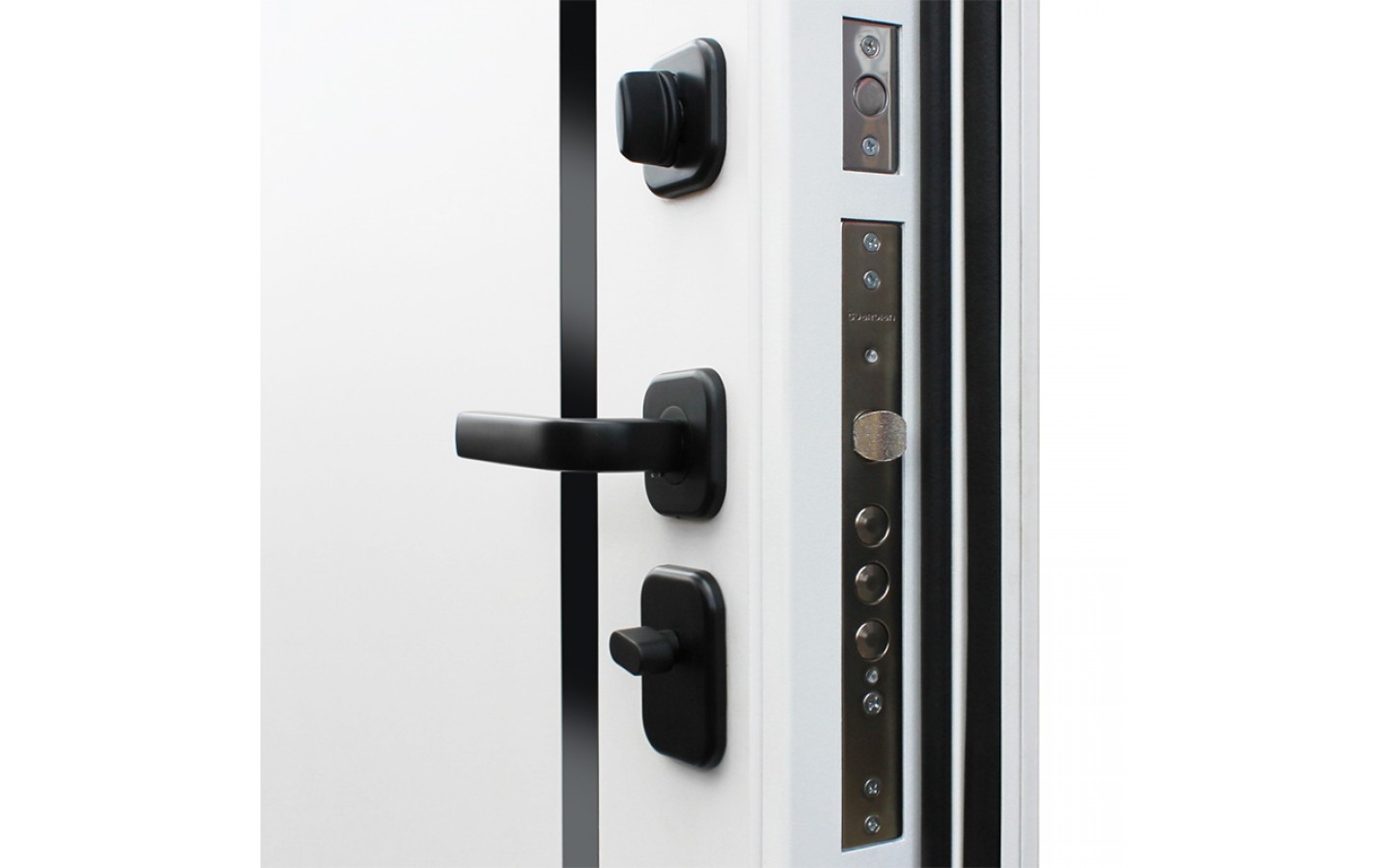 | Внешняя отделка | Лист металла 1, МДФ 80 мм., 5 мм. Экошпонированная панель МДФ 10 мм (дизайн ФЛС). Цвет белый матовый. Вертикальная вставка из черного глянцевого лакобеля. Объемная фрезеровка. Наличник гладкий |