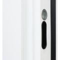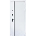 | Тип отделки двери | Лист металла 1, МДФ 80 мм., 5 мм. Экошпонированная панель МДФ 10 мм (дизайн ФЛС). Цвет 'белый матовый'. Вертикальная вставка из черного глянцевого лакобеля. Объемная фрезеровка. Наличник гладкий |