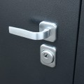 | Цилиндр | Евроцилиндр К-В (перфокарта). Броненакладка врезная. Штырь противосъемный (3 шт.). Накладки со шторками-автомат Кл-С 13. |