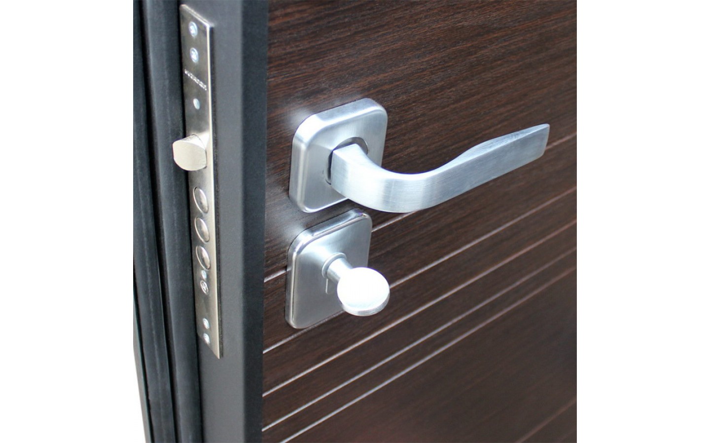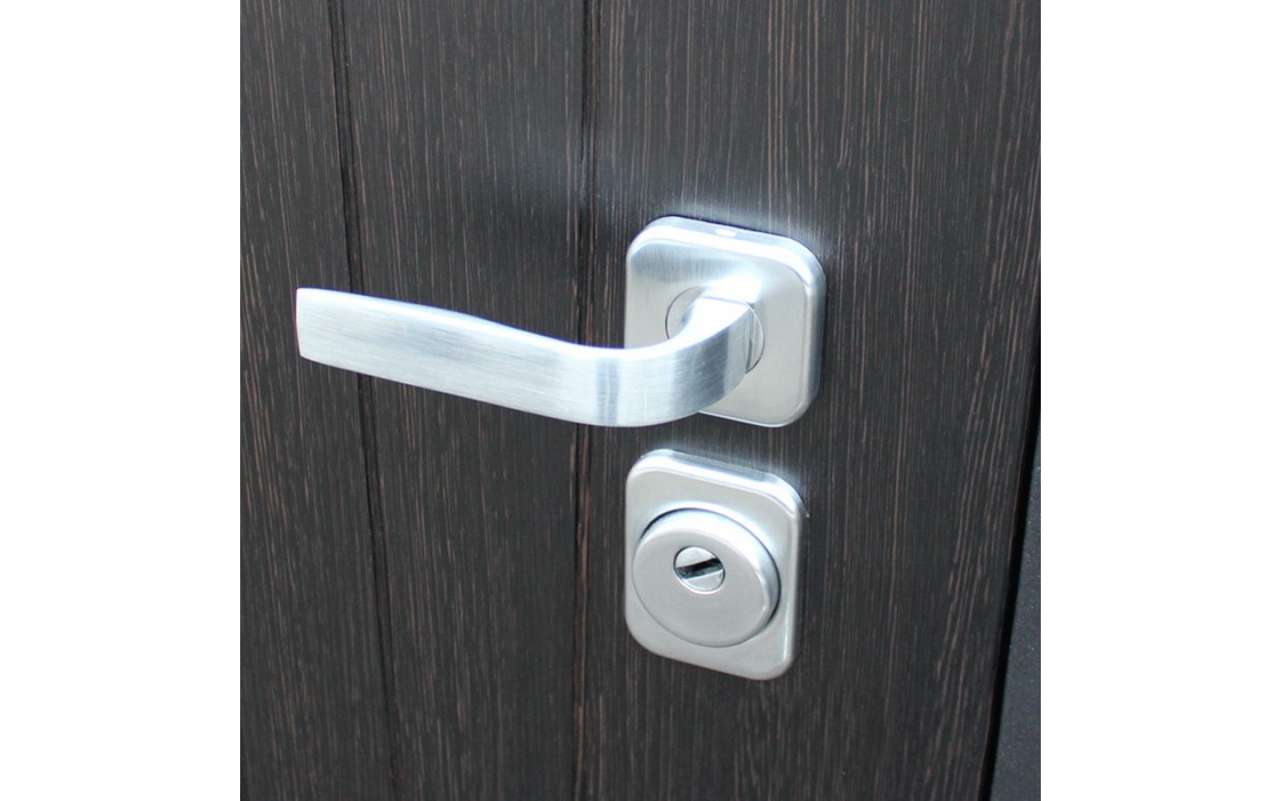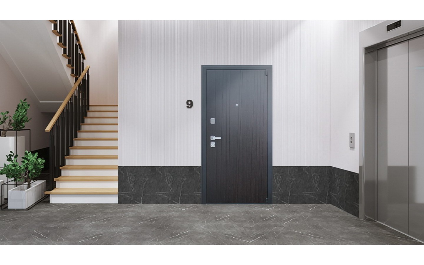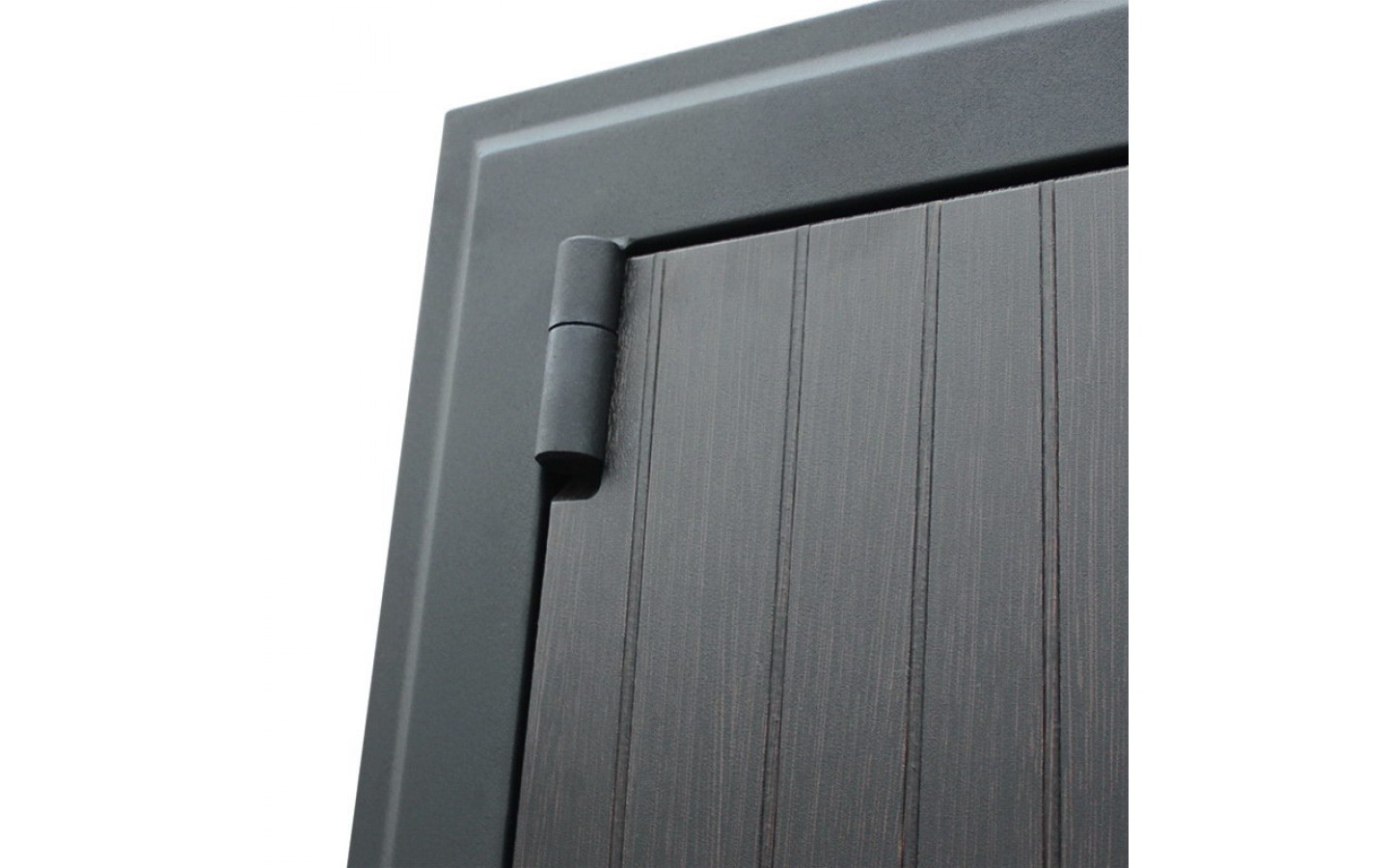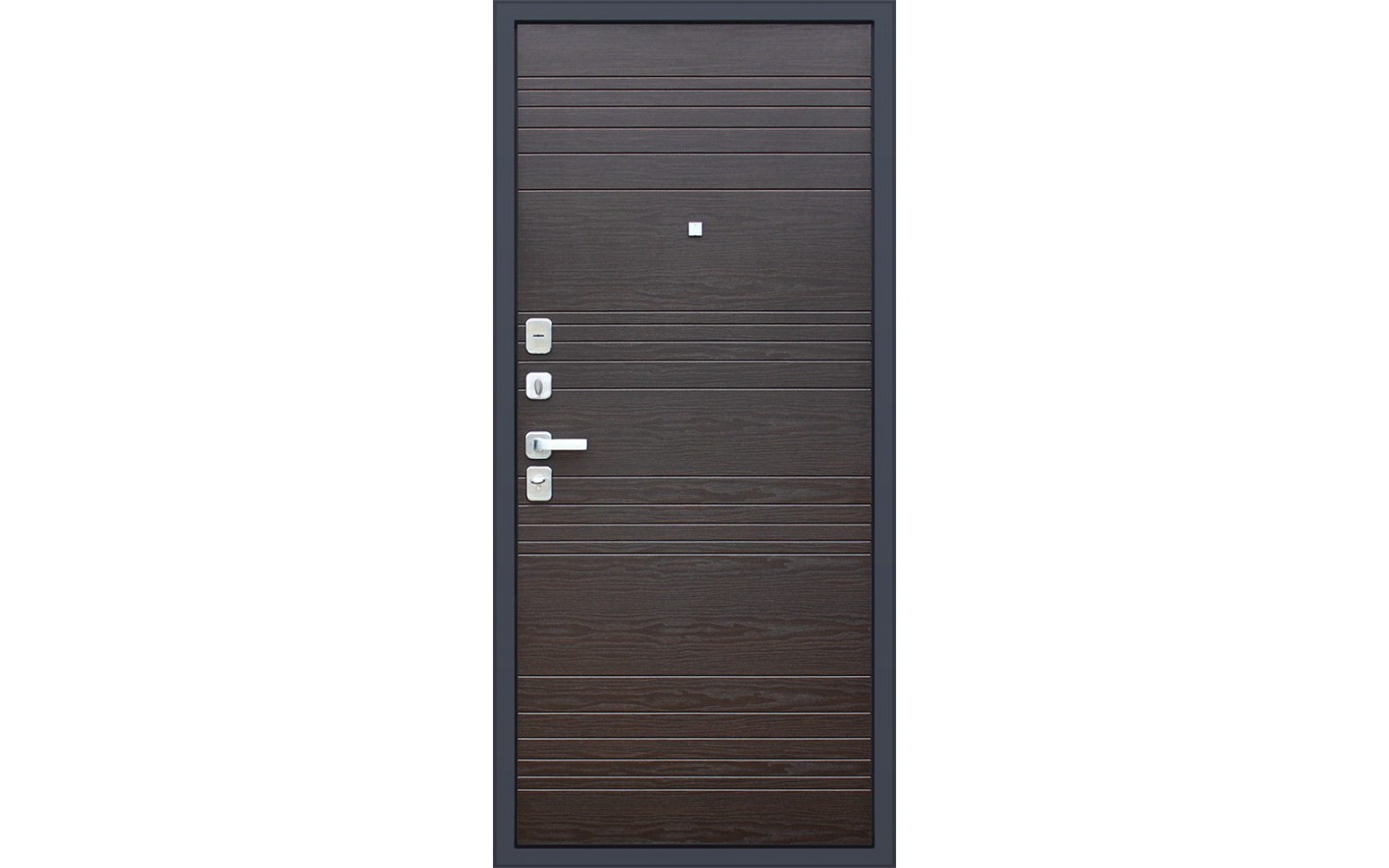 | Внешняя отделка | Лист металла 1, 5 мм. Панель МДФ 10 мм (Дизайн ФЛ). Объемная фрезеровка. Цвет венге. Наличник фигурный 80 мм. |