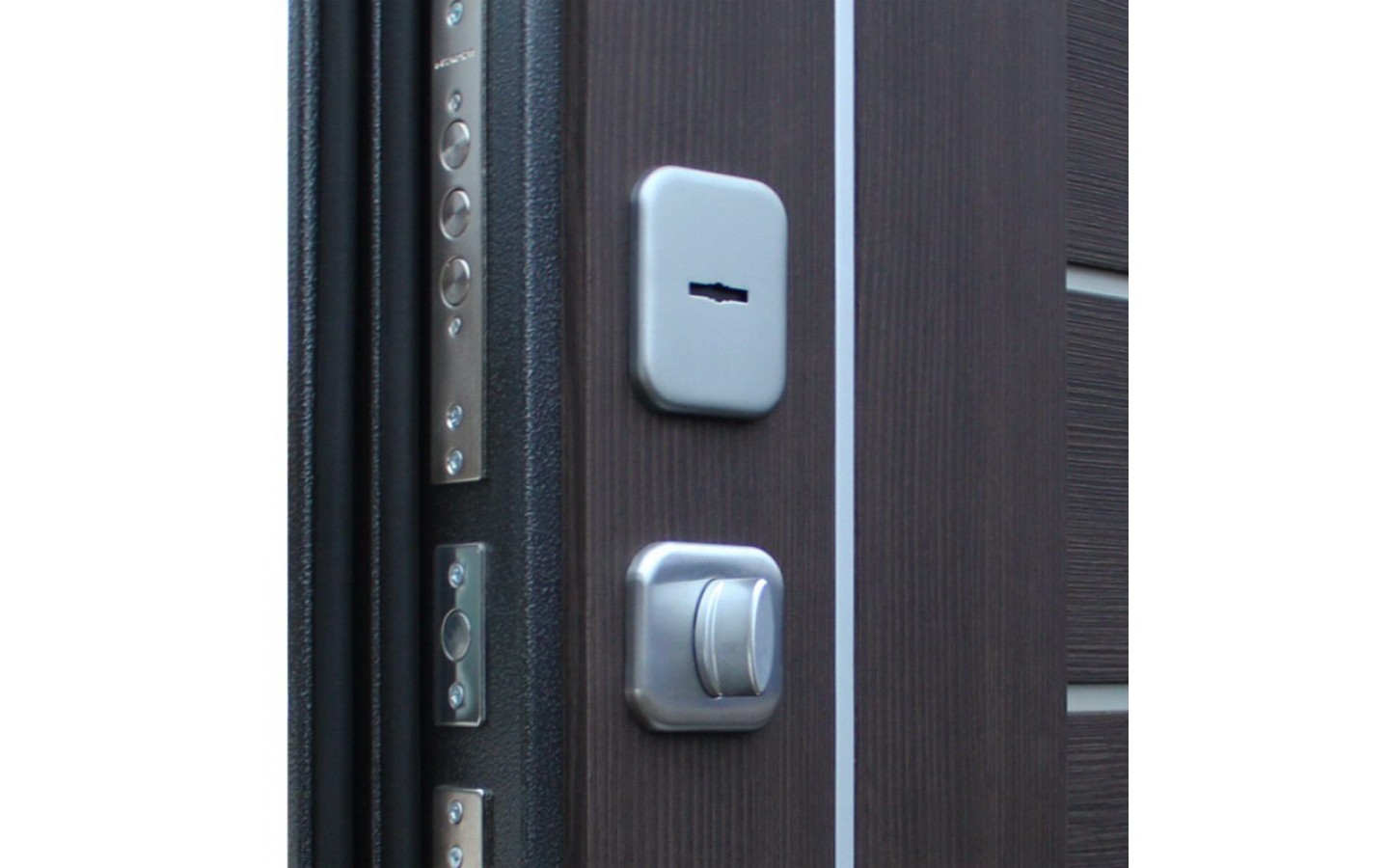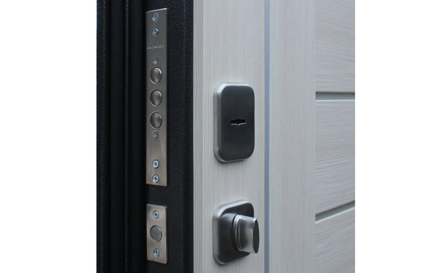 | Цилиндр | Евроцилиндр К-В (перфокарта). Броненакладка врезная. Штырь противосъемный (3 шт.). Накладки со шторками-автомат Кл-С 13. |