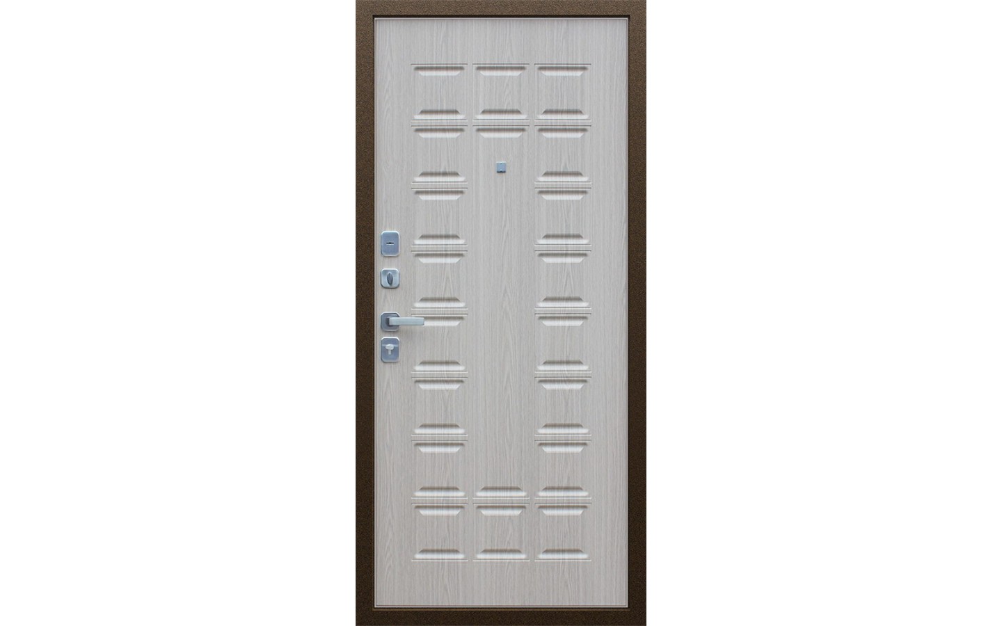 | Дополнительно | Евроцилиндр К-В (перфокарта). Броненакладка врезная. Штырь противосъемный (3 шт.). Накладки со шторками-автомат Кл-С 13. |