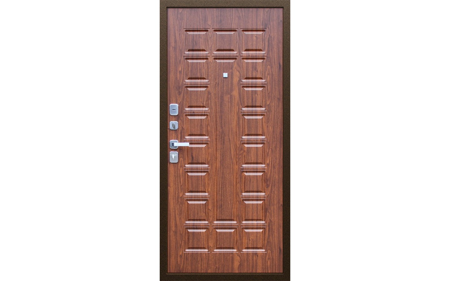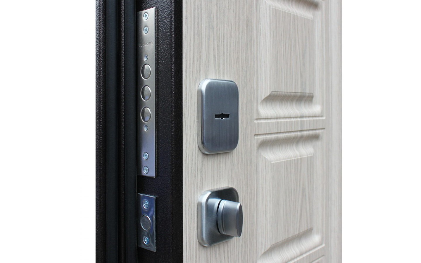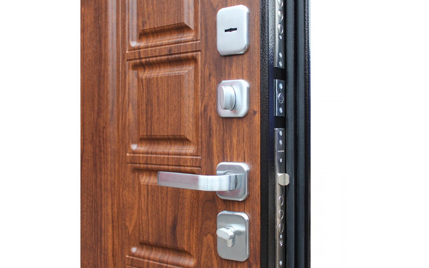 | Цилиндр | Евроцилиндр К-В (перфокарта). Броненакладка врезная. Штырь противосъемный (3 шт.). Накладки со шторками-автомат Кл-С 13. |