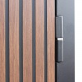 | Внешняя отделка | Лист металла 1, цвет черный кварц., черное патинирование по фрезеровке. Наличник МДФ гладкий 80 мм., 5 мм. Экошпонированная дизайнерская панель МДФ 10 мм. Линейная фрезеровка. Цветовая комбинация: дуб кантри темный |