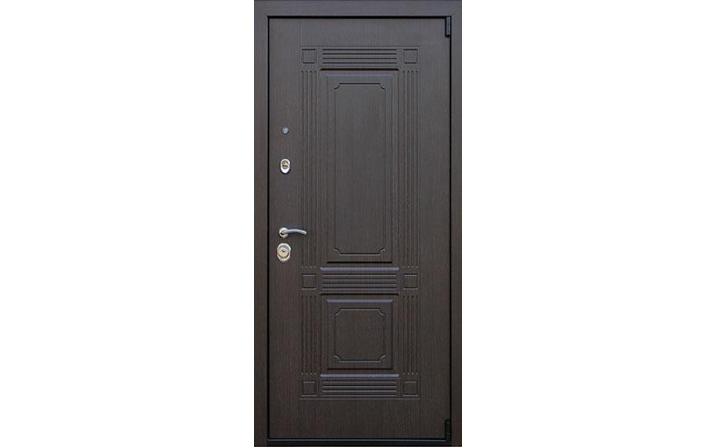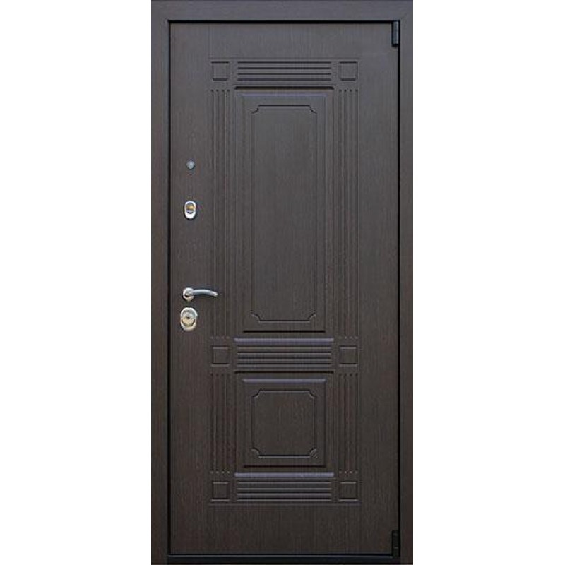 | Внешняя отделка | Лист металла 2 мм. Панель МДФ 12 мм. Объемная фрезеровка. Цвет 'венге'. Наличник МДФ 80 мм. |