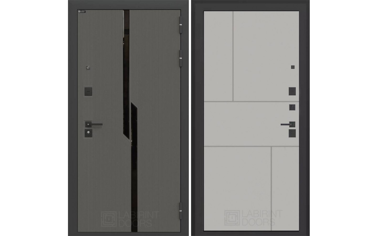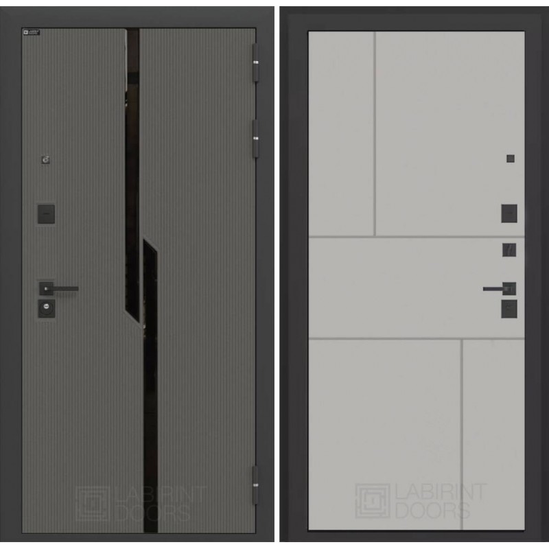 | Тип отделки двери | Декоративная MDF панель 10 мм с черным стеклом фацет, цвет 'Лофт графит' с металлическим наличником |