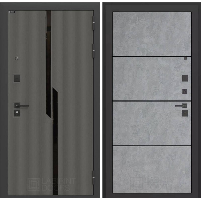 | Тип отделки двери | Декоративная MDF панель 10 мм с черным стеклом фацет, цвет 'Лофт графит' с металлическим наличником |