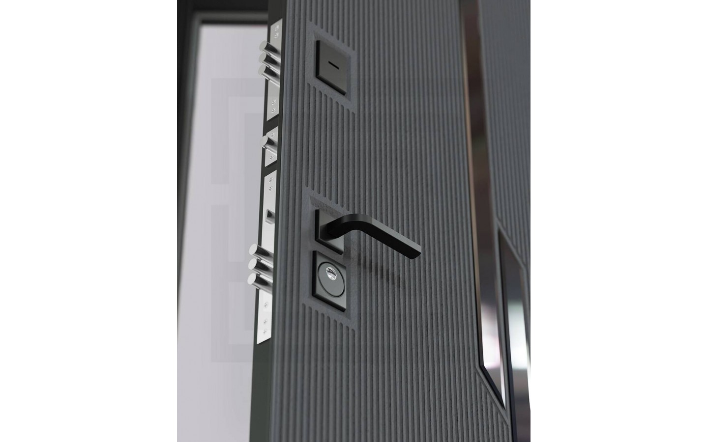 | Тип отделки двери | Декоративная MDF панель 10 мм с черным стеклом фацет, цвет 'Лофт графит' с металлическим наличником |