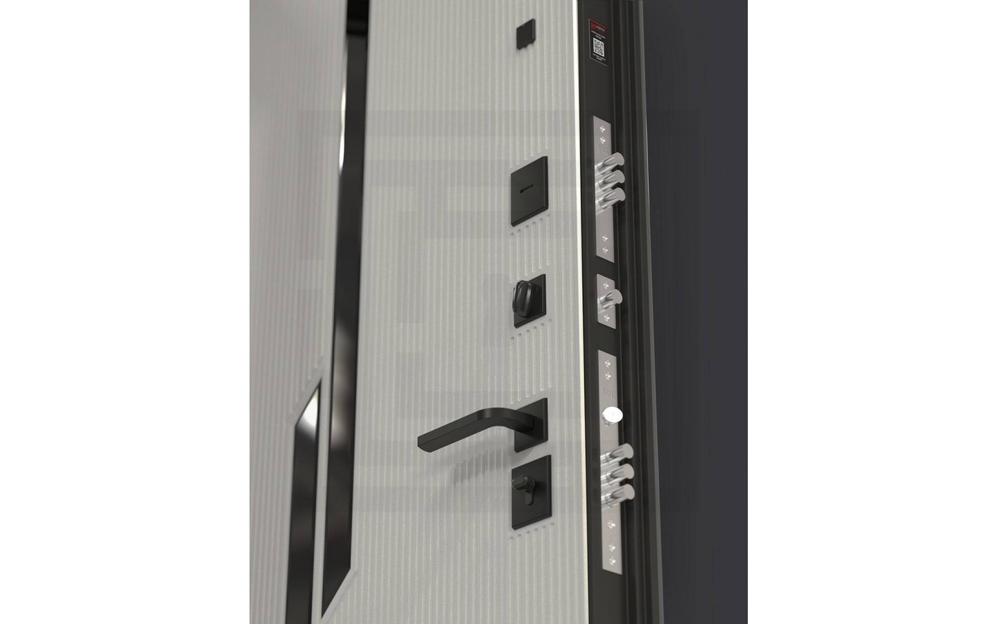 | Комплектация | глазок, Дверная ручка, накладка со шторкой, ночная задвижка. Цилиндр ключ-вертушка (производитель не регламентируется), регулируемый эксцентрик., Фурнитура в черном цвете: Броненакладка врезная |