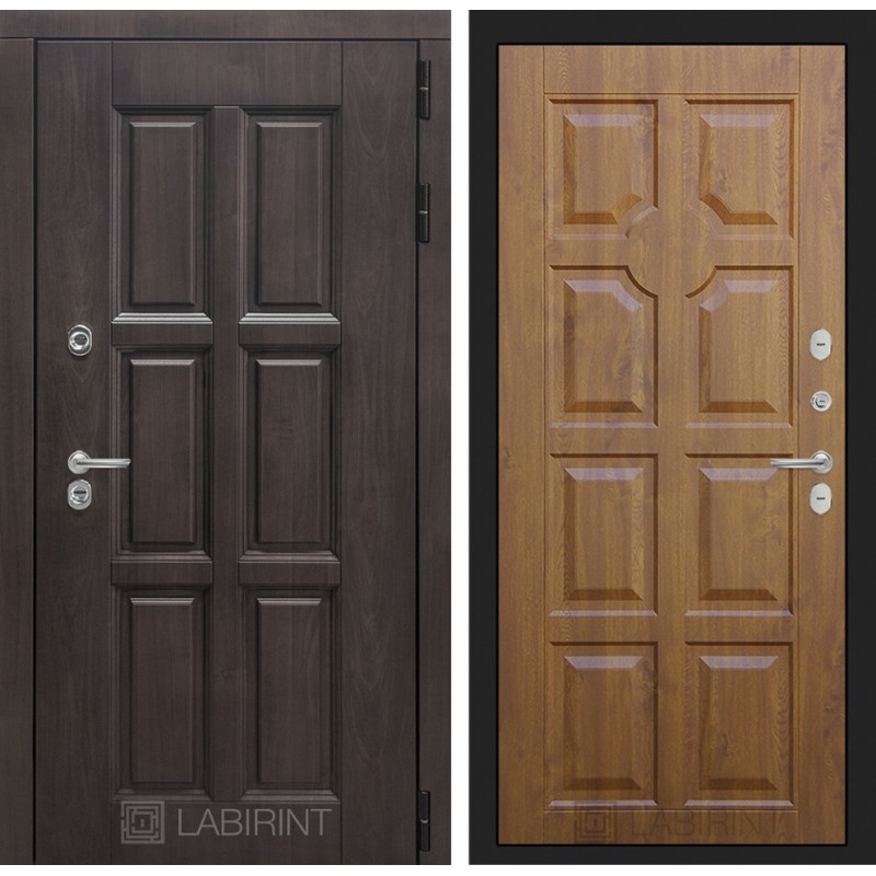| Тип отделки двери | Влагостойкая MDF панель 16 мм с наличниками, цвет Винорит 'Алмон 28' с черной патиной |