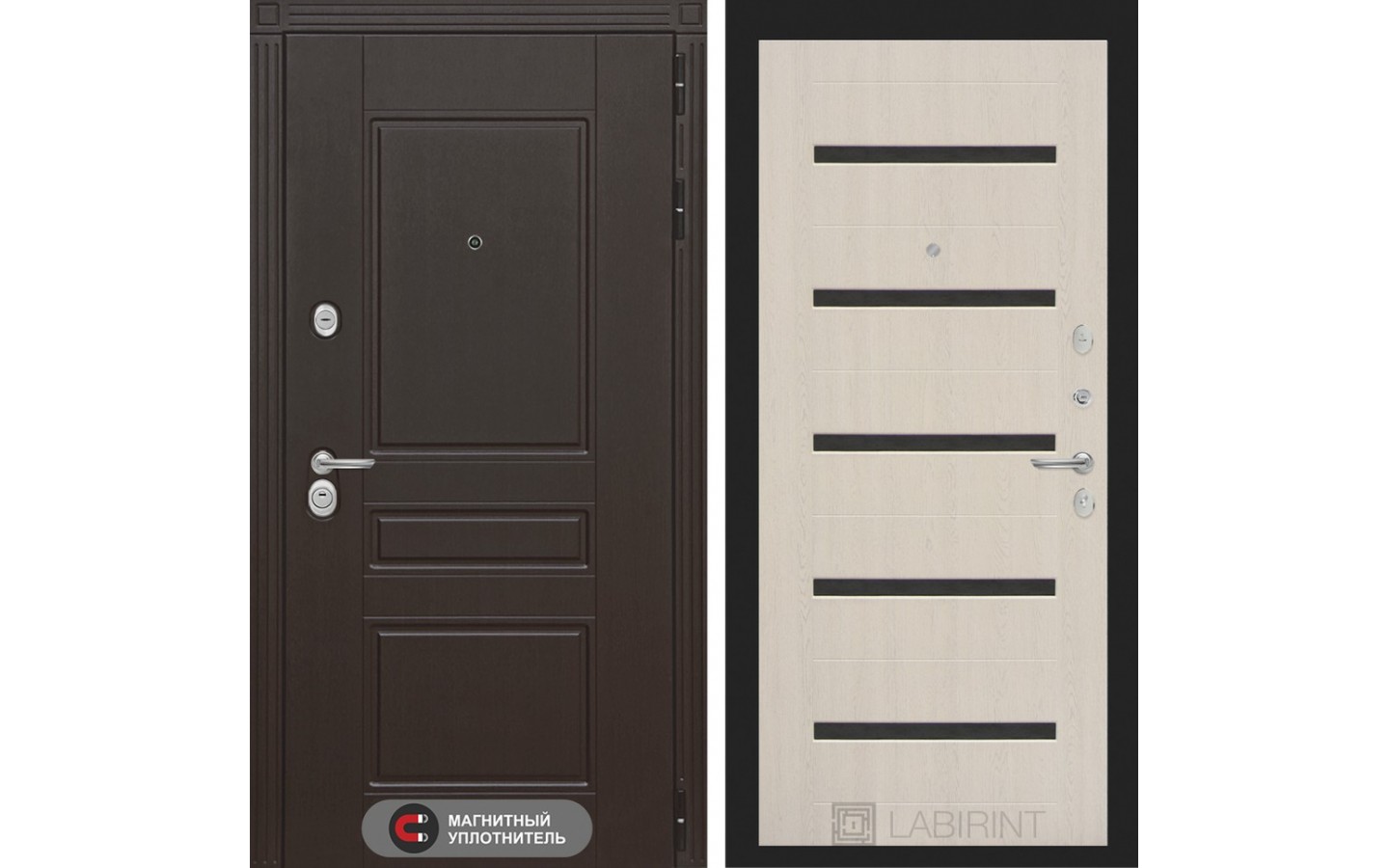 | Тип отделки двери | Декоративная MDF панель 10 мм с фрезерованным наличником, цвет "Венге" |