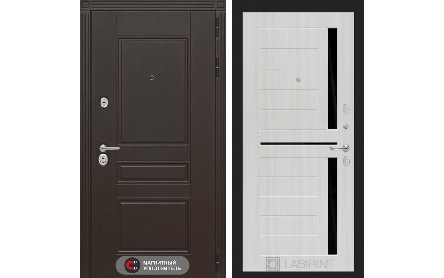 | Тип отделки двери | Декоративная MDF панель 10 мм с фрезерованным наличником, цвет "Венге" |