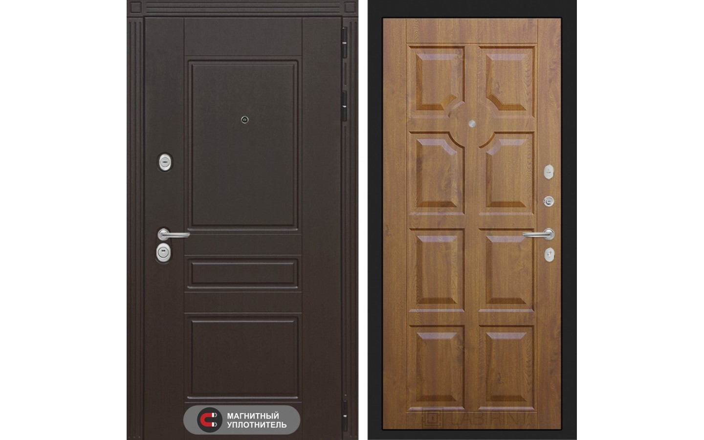 | Тип отделки двери | Декоративная MDF панель 10 мм с фрезерованным наличником, цвет "Венге" |