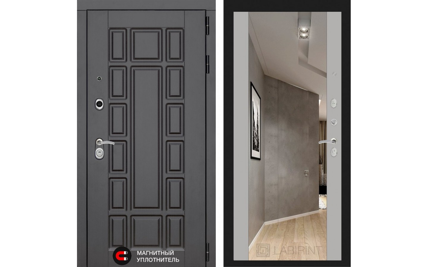 | Внутренняя отделка | Декоративная MDF панель 16 мм с широким зеркалом, цвет 'Софт Грей' (без текстуры) |