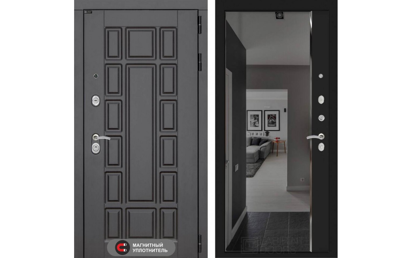 | Внутренняя отделка | Декоративная MDF панель 16 мм Зеркало Панорама фацет с тонировкой, цвет 'Черный кварц' |