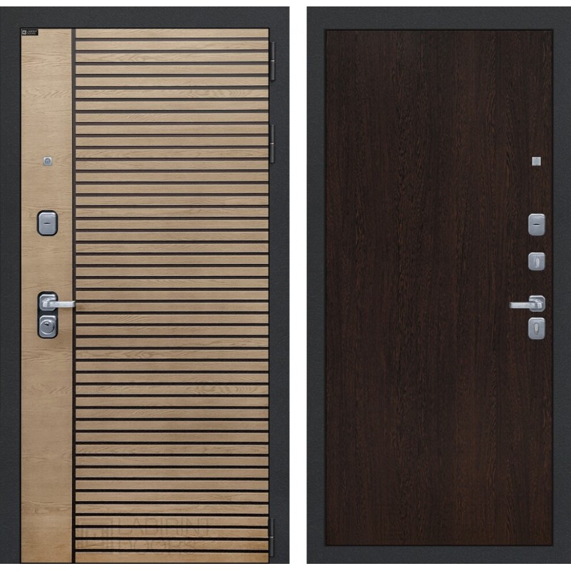 | Тип отделки двери | Декоративная MDF панель 10 мм с патиной, цвет 'Астана табак горизонт' с металлическим наличником |