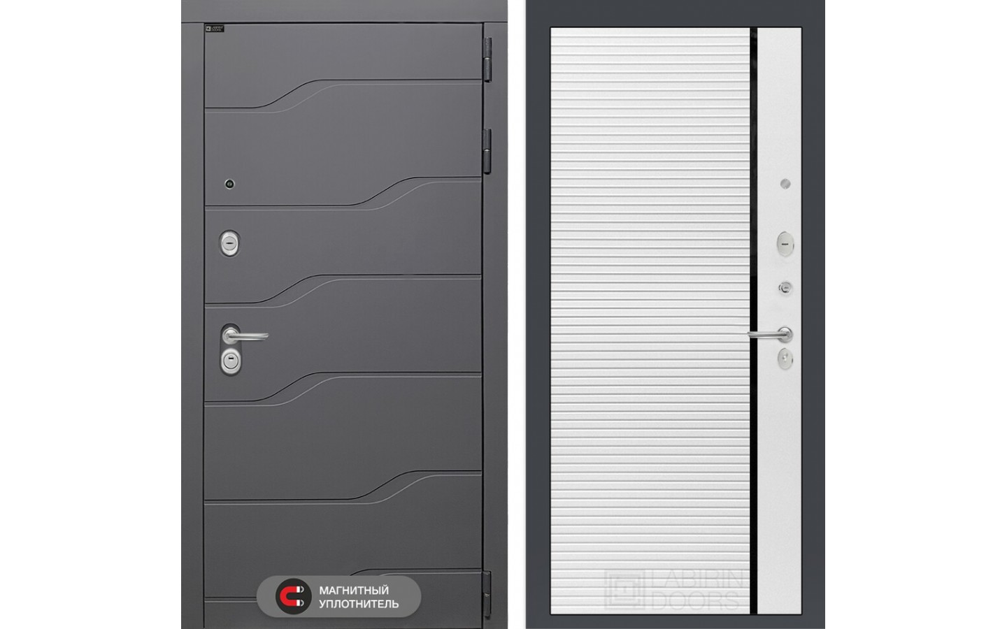| Тип отделки двери | Современная декоративная MDF панель 10 мм с наличником, цвет 'Графит софт' |