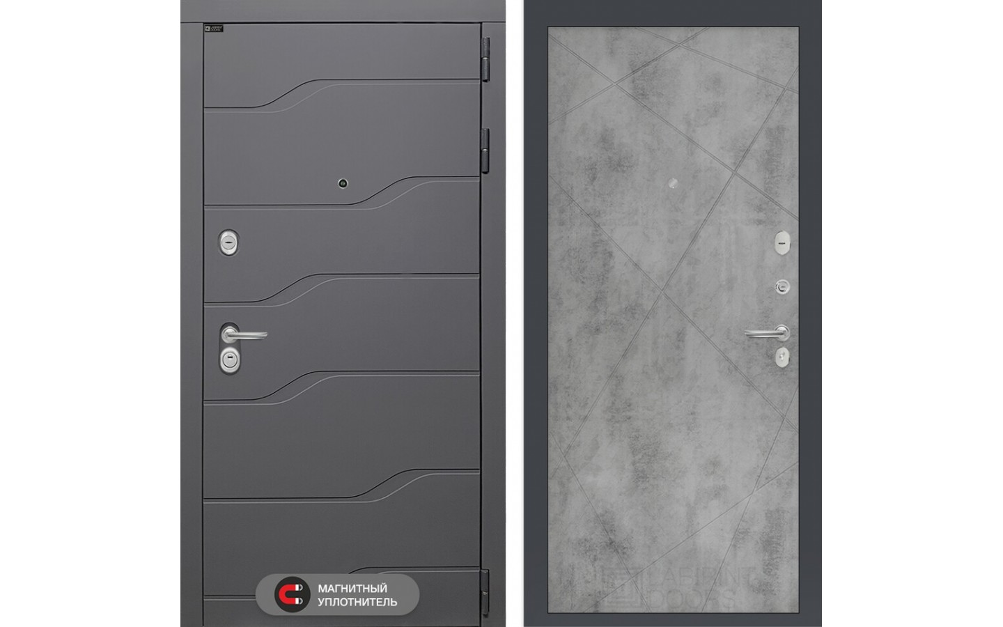 | Тип отделки двери | Современная декоративная MDF панель 10 мм с наличником, цвет 'Графит софт' |