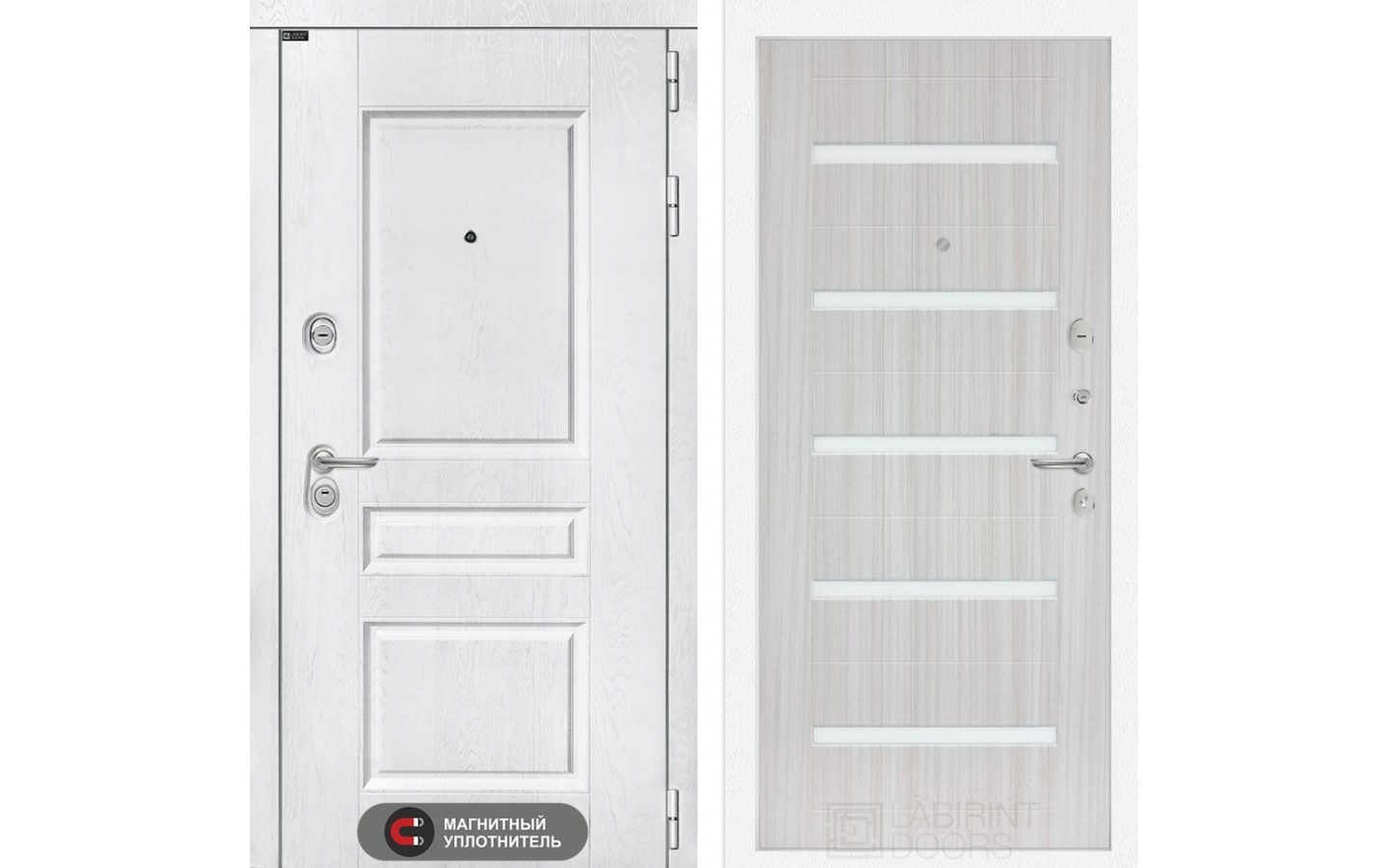 | Тип отделки двери | Классическая MDF панель 16 мм с наличником, цвет 'Альберо браш серебро' |