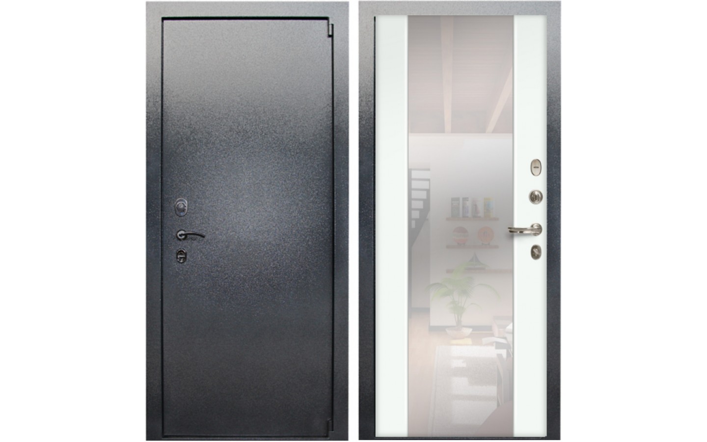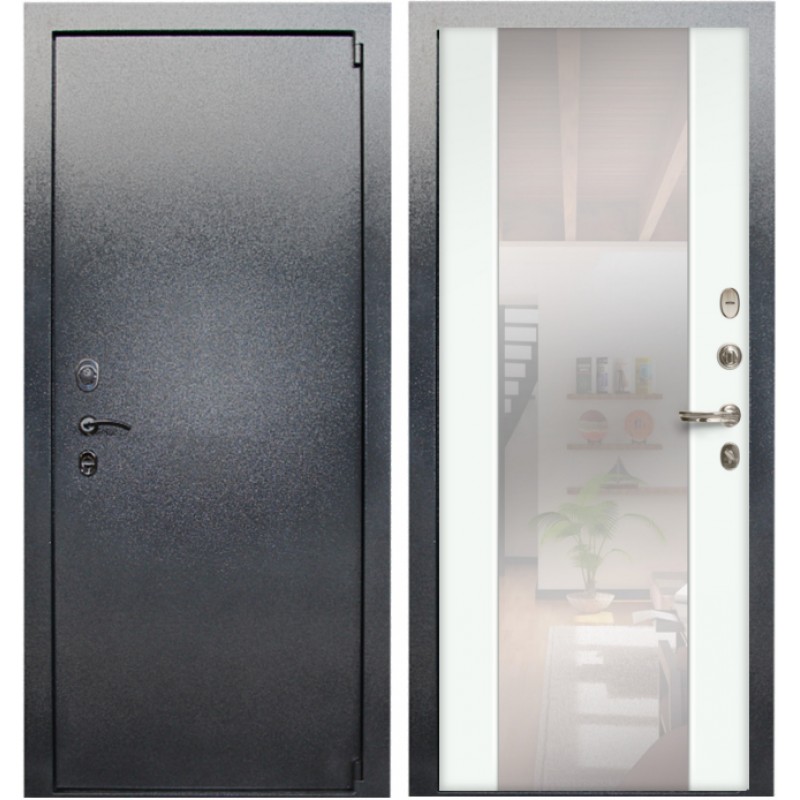 Комплектация стальной входной двери Лекс-3 БАРК Стиль с Зеркалом Ясень белый (панель №61):