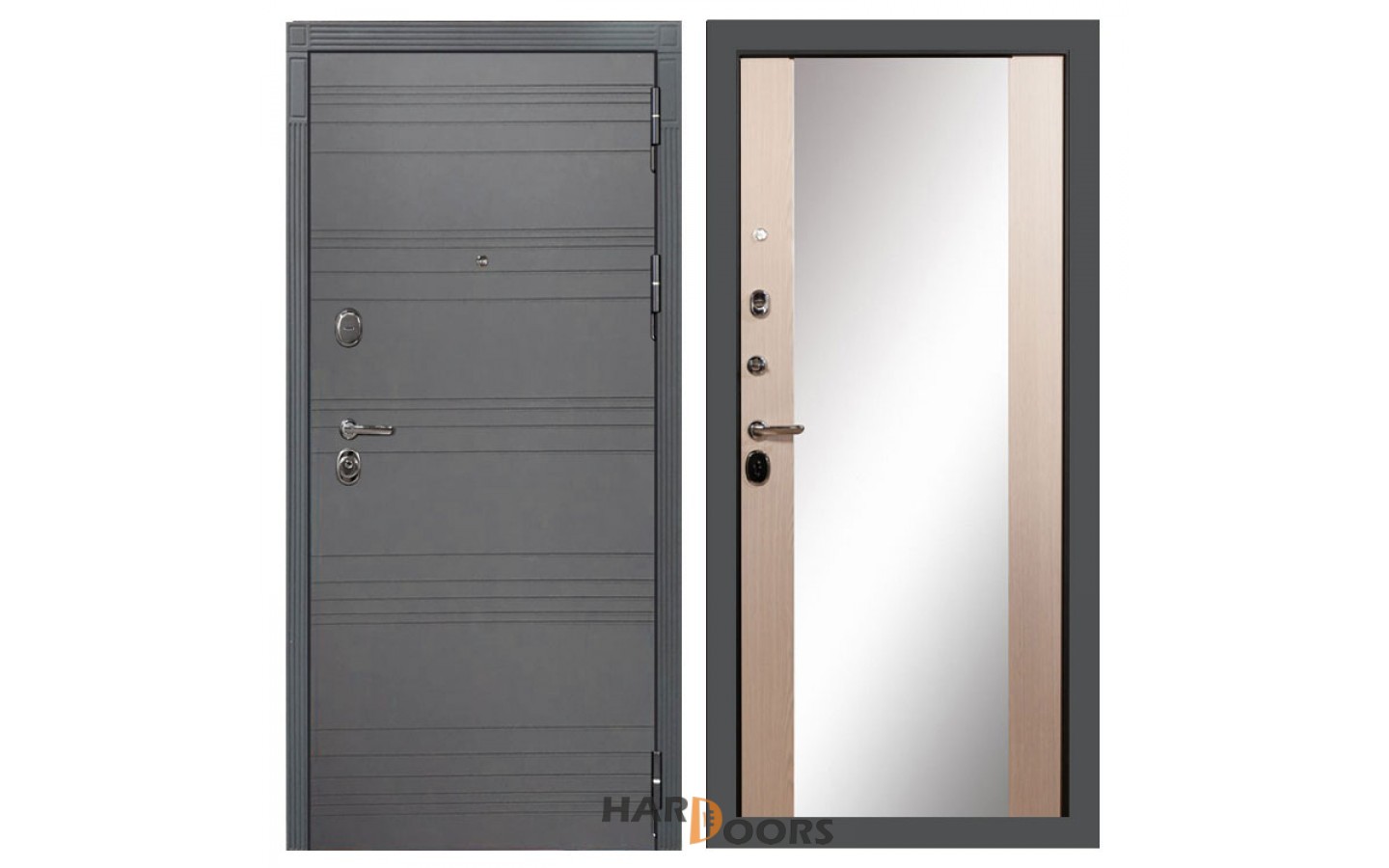 Комплектация стальной входной двери Лекс Легион Софт графит №3 с зеркалом / Дуб беленый (панель №45):