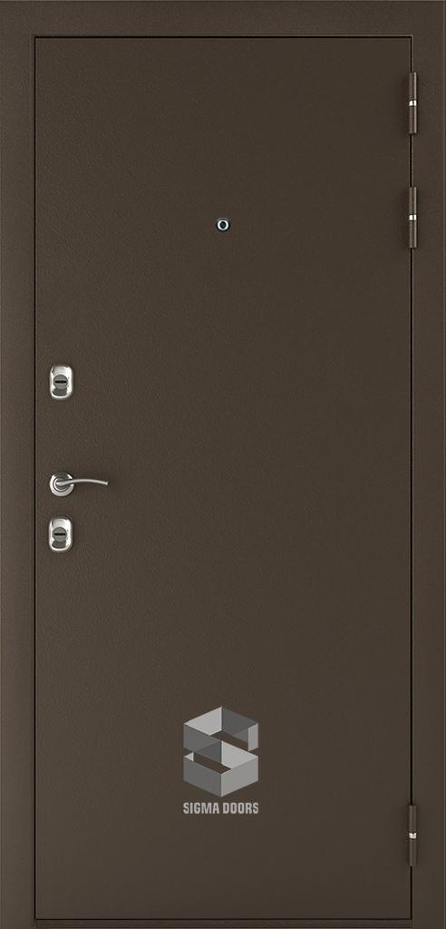 Sigma Дача – входная дверь серии Classic, которая сочетает в себе небольшую стоимость, хорошую тепло- и звукоизоляцию. Полотно изготовлено по сварной технологии из двух стальных листов толщиной 1,5 мм. Наружная сторона обработаны антикоррозионной грунтовкой и окрашена в порошковую краску, внутренняя – только окрашена. Такое покрытие отлично выдерживает мелкие повреждения, не поддается выцветанию или воздействию влаги.