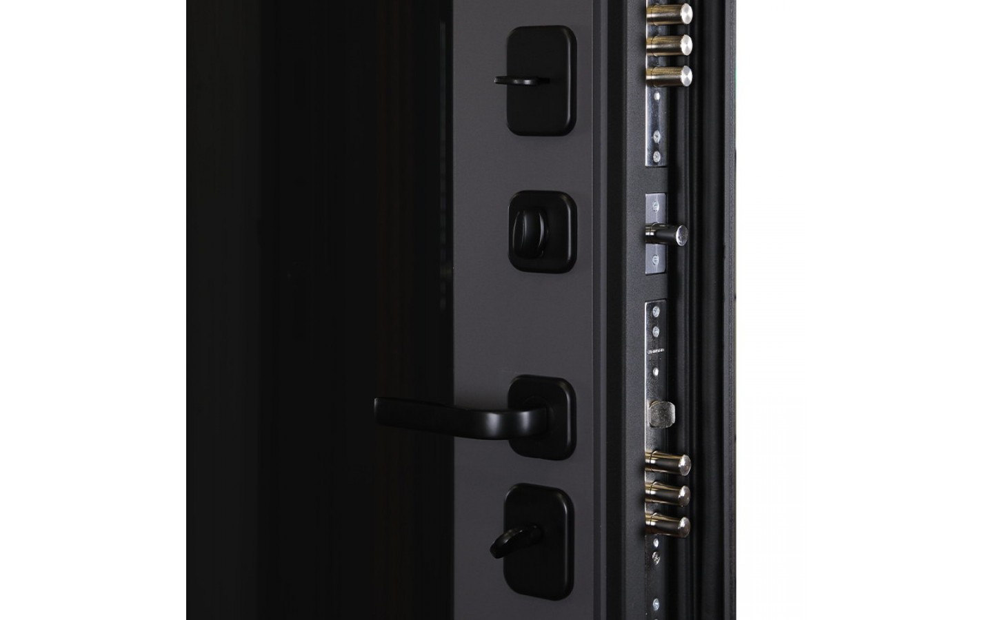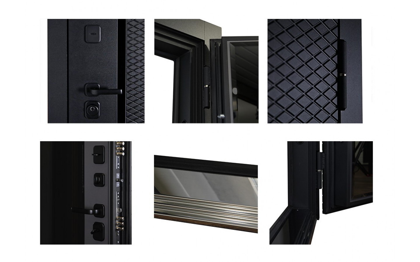 | Дополнительно | Евроцилиндр К-В (перфокарта). Броненакладка врезная. Защитные накладки со шторками автомат. Штырь противосъемный (3 шт). Порог из нержавеющей стали (цвет "хром"). |